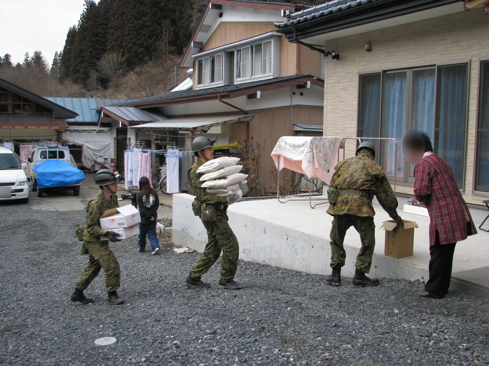 救援物資を配達している様子