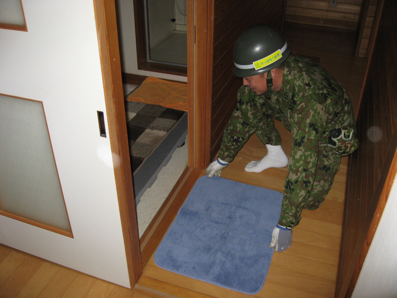 水回り整備 拡大表示 ダウンロード 識別子 : 6968 タイトルよみ : ミズマワリセイビ 說明・要約 : 足ふきマットを敷いている自衛隊員の様子 作成者(撮影者) : 自衛隊 作成者(撮影者)よみ : ジエイタイ 提供者 : 自衛隊 提供者よみ : ジエイタイ 撮影(作成)場所 : 岩手県上閉伊郡大槌町 撮影(作成)場所よみ : イワテケンカミヘイグンオオツチチョウ 作成日・撮影日 : 2011年 4月 11日 カテゴリー : 被災者支援 地域 : その他 備考 : 震災事象 住民(住居:避難所~仮設住宅~災害公営住宅) > 外部支援による運営体制構築 > 自衛隊・県警・消防が、避難所運営の手伝い開始