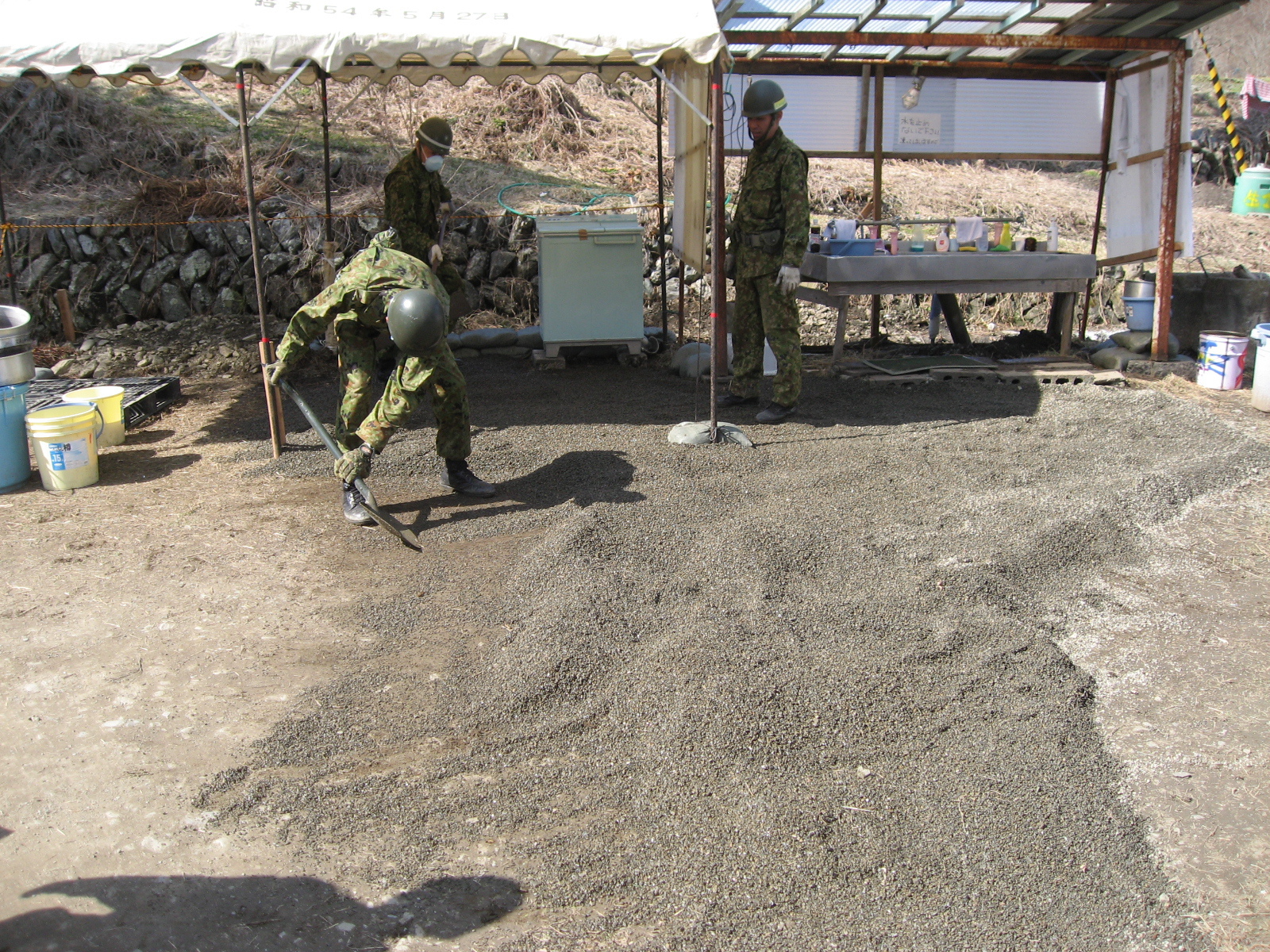 流し台の水回りを整備している自衛隊員の様子