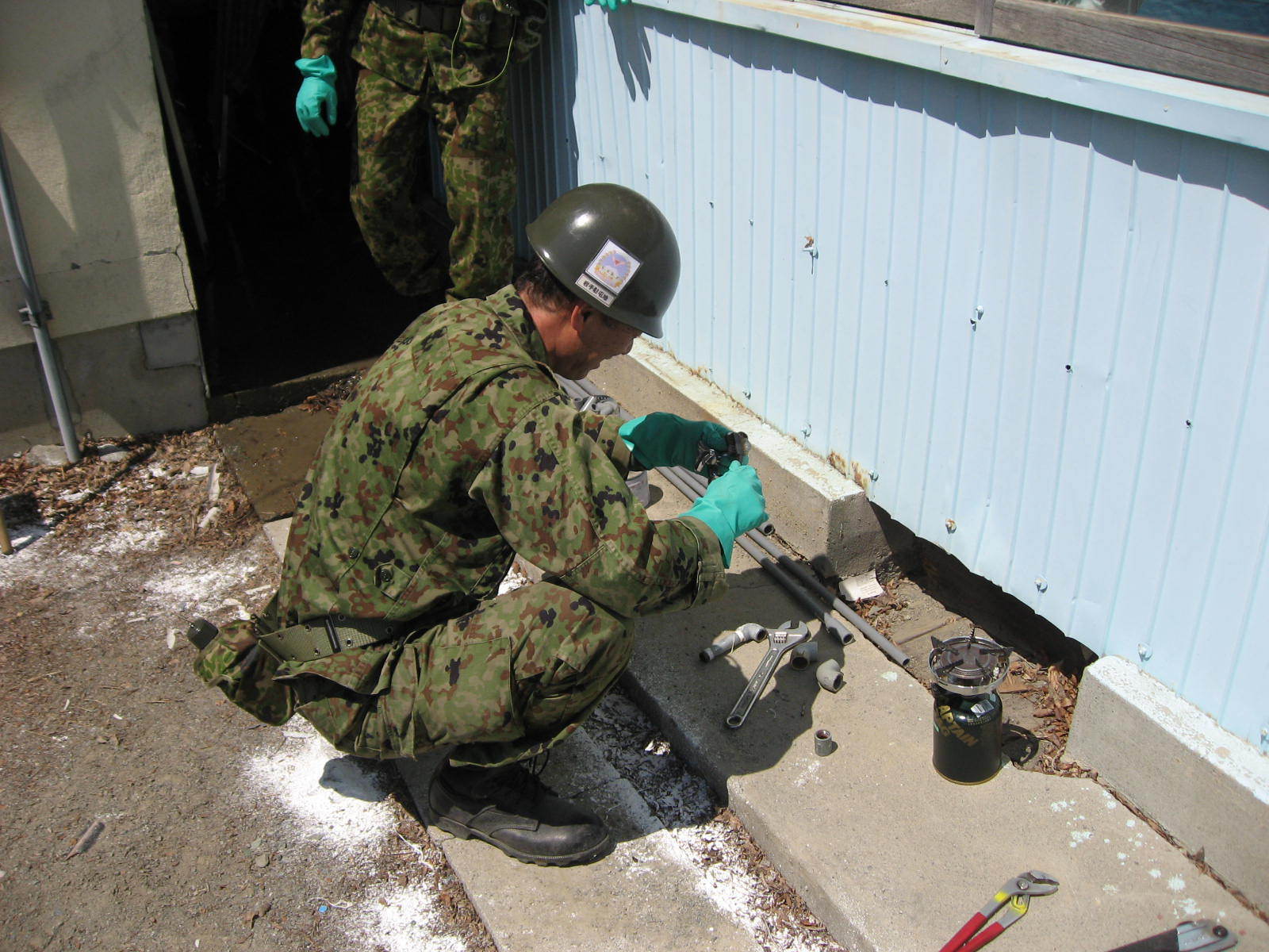 水道の配管工事をしている自衛隊員の様子