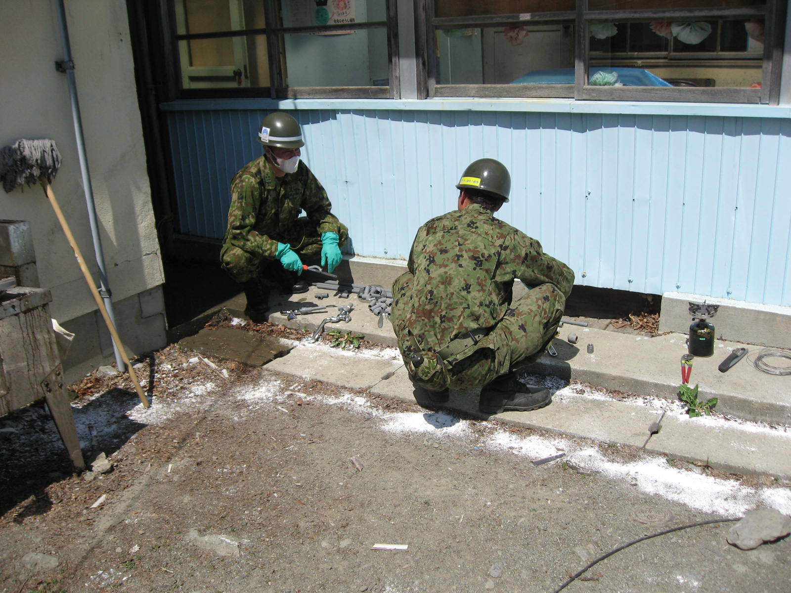 水道の配管工事をしている自衛隊員の様子