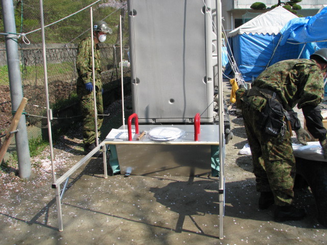 応急トイレ設置 拡大表示 ダウンロード 識別子 : 7063 タイトルよみ : オウキュウトイレセッチ 說明・要約 : 応急トイレを組み立てている自衛隊員 作成者(撮影者) : 自衛隊 作成者(撮影者)よみ : ジエイタイ 提供者 : 自衛隊 提供者よみ : ジエイタイ 撮影(作成)場所 : 岩手県上閉伊郡大槌町 撮影(作成)場所よみ : イワテケンカミヘイグンオオツチチョウ 作成日・撮影日 : 2011年 4月 30日 カテゴリー : 避難所 被災者支援 地域 : その他 備考 : 関連アーカイブ 応急トイレ設置 応急トイレ設置 応急トイレ設置 応急トイレ設置 応急トイレ設置 応急トイレ設置 応急トイレ設置 震災事象 住民(住居:避難所~仮設住宅~災害公営住宅) > 外部支援による運営体制構築 > 自衛隊・県警・消防が、避難所運営の手伝い開始
