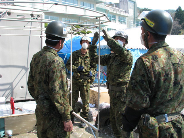 応急トイレ設置 拡大表示 ダウンロード 識別子 : 7066 タイトルよみ : オウキュウトイレセッチ 說明・要約 : 応急トイレを組み立てている自衛隊員 作成者(撮影者) : 自衛隊 作成者(撮影者)よみ : ジエイタイ 提供者 : 自衛隊 提供者よみ : ジエイタイ 撮影(作成)場所 : 岩手県上閉伊郡大槌町 撮影(作成)場所よみ : イワテケンカミヘイグンオオツチチョウ 作成日・撮影日 : 2011年 4月 30日 カテゴリー : 避難所 被災者支援 地域 : その他 備考 : 関連アーカイブ 応急トイレ設置 応急トイレ設置 応急トイレ設置 応急トイレ設置 応急トイレ設置 応急トイレ設置 応急トイレ設置 震災事象 住民(住居:避難所~仮設住宅~災害公営住宅) > 外部支援による運営体制構築 > 自衛隊・県警・消防が、避難所運営の手伝い開始