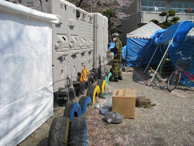 応急トイレ設置 拡大表示 ダウンロード 識別子 : 7071 タイトルよみ : オウキュウトイレセッチ 說明・要約 : 応急トイレを組み立てている自衛隊員 作成者(撮影者) : 自衛隊 作成者(撮影者)よみ : ジエイタイ 提供者 : 自衛隊 提供者よみ : ジエイタイ 撮影(作成)場所 : 岩手県上閉伊郡大槌町 撮影(作成)場所よみ : イワテケンカミヘイグンオオツチチョウ 作成日・撮影日 : 2011年 4月 30日 カテゴリー : 避難所 被災者支援 地域 : その他 備考 : 関連アーカイブ 応急トイレ設置 応急トイレ設置 応急トイレ設置 応急トイレ設置 応急トイレ設置 応急トイレ設置 応急トイレ設置 震災事象 住民(住居:避難所~仮設住宅~災害公営住宅) > 外部支援による運営体制構築 > 自衛隊・県警・消防が、避難所運営の手伝い開始