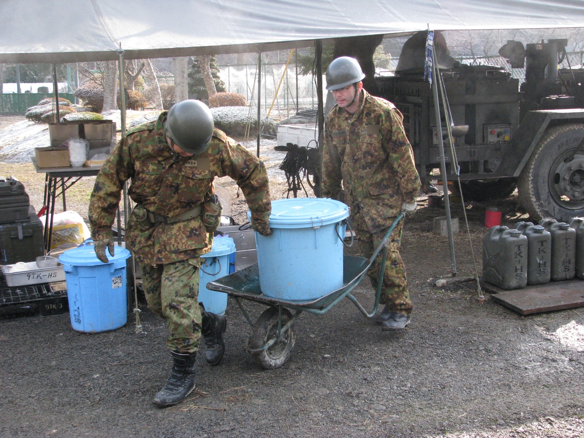 温水支援をしている自衛隊員の様子