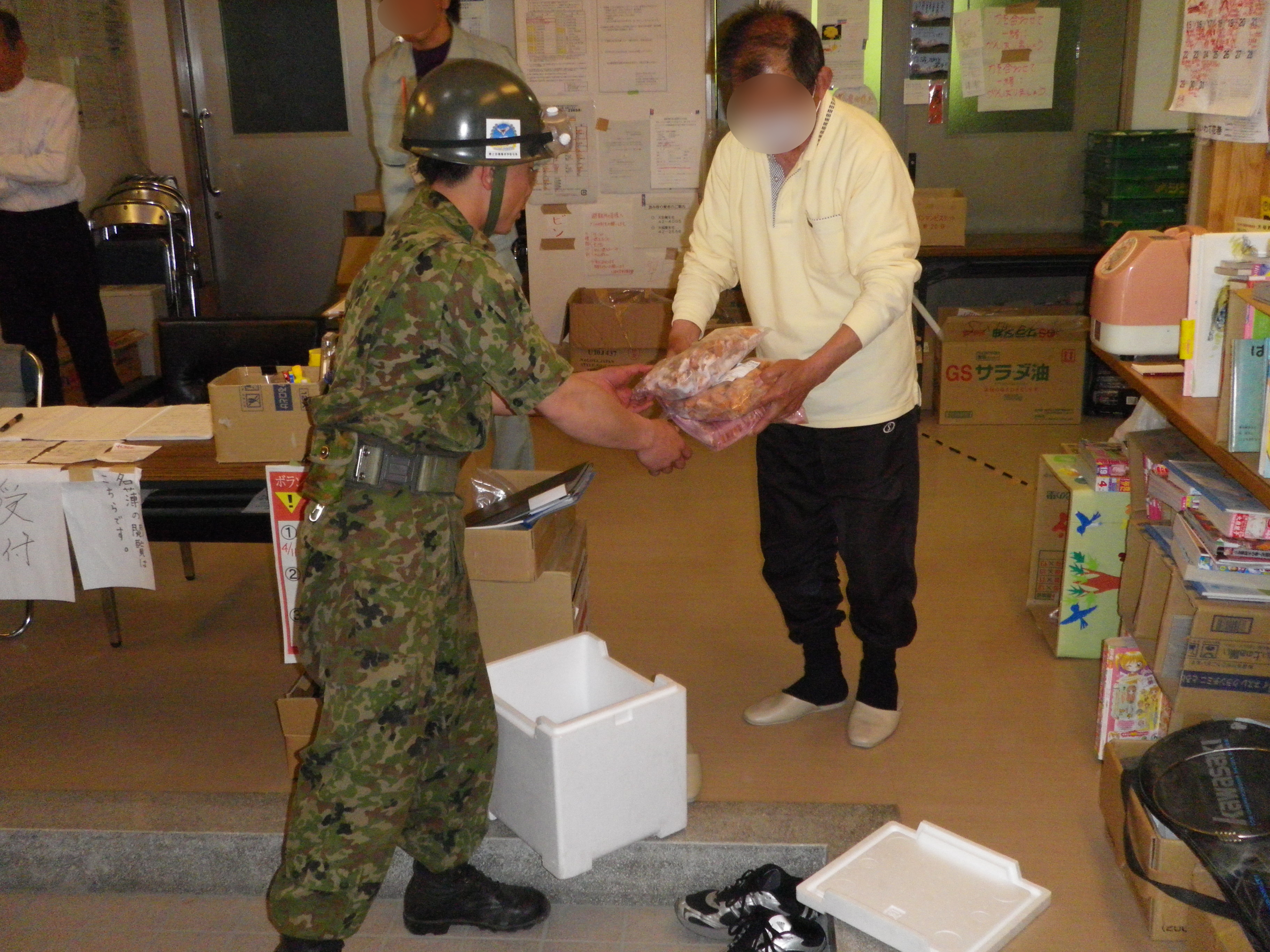 自衛隊による物資輸送 拡大表示 ダウンロード 識別子 : 7107 タイトルよみ : ジエイタイニヨルブッシユソウ 說明・要約 : 避難所に支援物資を配達している自衛隊員 作成者(撮影者) : 自衛隊 作成者(撮影者)よみ : ジエイタイ 提供者 : 自衛隊 提供者よみ : ジエイタイ 撮影(作成)場所 : 岩手県上閉伊郡大槌町 大槌町 撮影(作成)場所よみ : イワテケンカミヘイグンオオツチチョウ オオツチチョウ 作成日・撮影日 : 2011年 5月 20日 カテゴリー : 避難所 被災者支援 地域 : その他 備考 : 一般公開 震災事象 住民(住居:避難所~仮設住宅~災害公営住宅) > 外部支援による運営体制構築 > 自衛隊・県警・消防が、避難所運営の手伝い開始