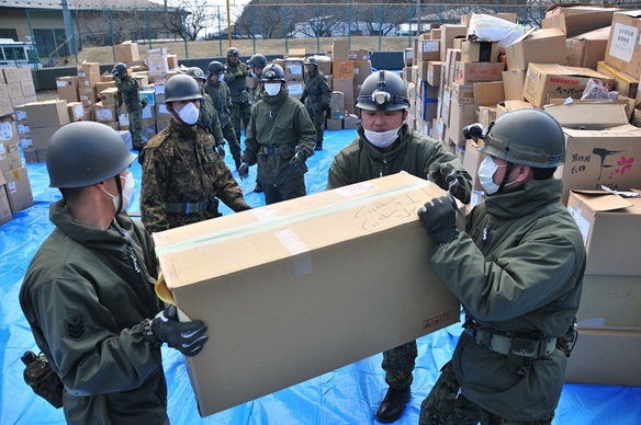 寺野物資集積所での自衛隊の救援活動 拡大表示 ダウンロード 識別子 : 7133 タイトルよみ : テラノブッシシュウセキジョデノジエイタイノキュウエンカツドウ 說明・要約 : 寺野物資集積所に救援物資を搬入している自衛隊員の様子 作成者(撮影者) : 非公開 作成者(撮影者)よみ : ヒコウカイ 提供者 : 非公開 提供者よみ : ヒコウカイ 撮影(作成)場所 : 岩手県上閉伊郡大槌町 寺野 撮影(作成)場所よみ : イワテケンカミヘイグンオオツチチョウ テラノ 作成日・撮影日 : 2011年 3月 カテゴリー : 支援・援助物資 被災者支援 地域 : 小鎚・臼澤地区 備考 : 関連アーカイブ 寺野物資集積所での自衛隊の救援活動 寺野物資集積所での自衛隊の救援活動 寺野物資集積所での自衛隊の救援活動 寺野物資集積所での自衛隊の救援活動 寺野物資集積所での自衛隊の救援活動 自衛隊の救援活動 救援物資の輸送、配達 救援物資の輸送、配達 震災事象 住民(住居:避難所~仮設住宅~災害公営住宅) > 避難所運営の機能化・安定化 > 寺野のふれあい運動公園に物資配給拠点を設置