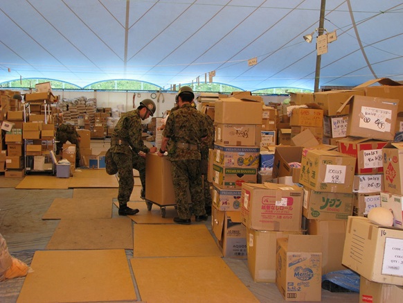 寺野物資集積所での自衛隊の救援活動 拡大表示 ダウンロード 識別子 : 7137 タイトルよみ : テラノブッシシュウセキジョデノジエイタイノキュウエンカツドウ 說明・要約 : 物資保管テントに搬入された救援物資の整理 作成者(撮影者) : 非公開 作成者(撮影者)よみ : ヒコウカイ 提供者 : 非公開 提供者よみ : ヒコウカイ 撮影(作成)場所 : 岩手県上閉伊郡大槌町 寺野 撮影(作成)場所よみ : イワテケンカミヘイグンオオツチチョウ コヅチ 作成日・撮影日 : 2011年 3月 カテゴリー : 支援・援助物資 被災者支援 地域 : 小鎚・臼澤地区 備考 : 震災事象 住民(住居:避難所~仮設住宅~災害公営住宅) > 避難所運営の機能化・安定化 > 寺野のふれあい運動公園に物資配給拠点を設置