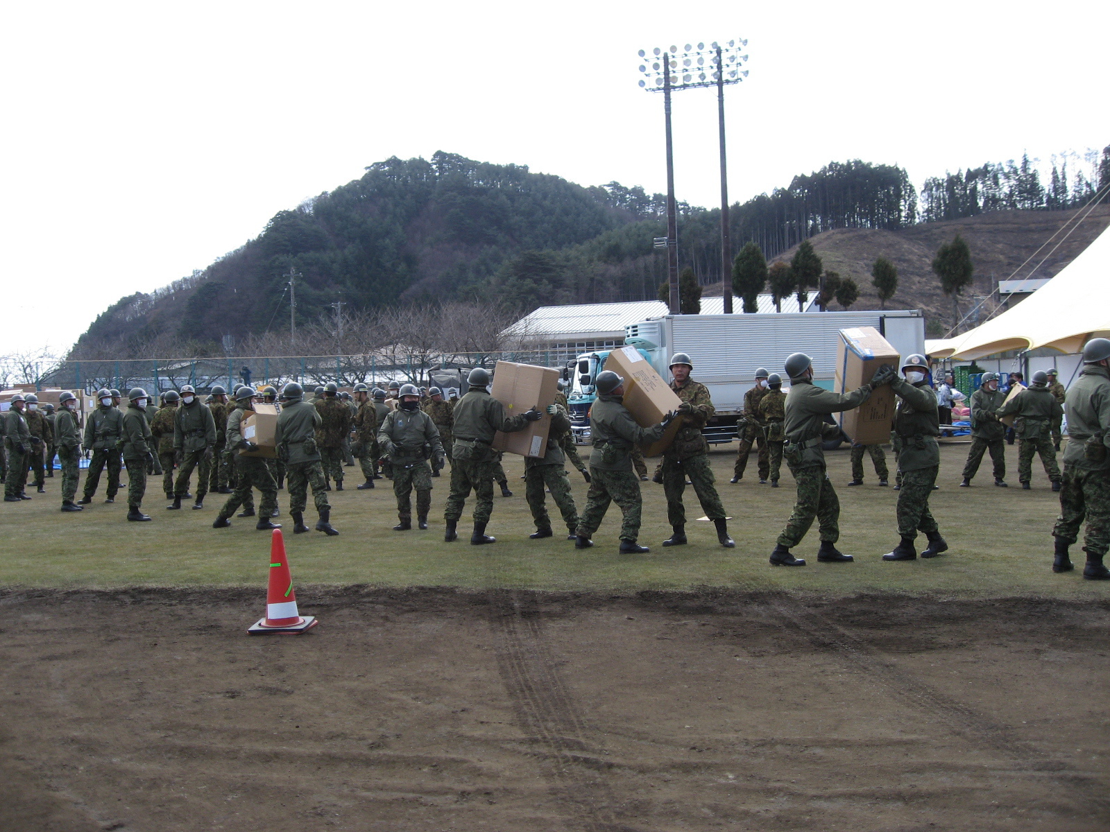 寺野物資集積所の様子 拡大表示 ダウンロード 識別子 : 7168 タイトルよみ : テラノブッシシュウセキジョノヨウス 說明・要約 : 寺野物資集積所内に支援物資を手渡しで搬送している予備自衛官 作成者(撮影者) : 自衛隊 作成者(撮影者)よみ : ジエイタイ 提供者 : 自衛隊 提供者よみ : ジエイタイ 撮影(作成)場所 : 岩手県上閉伊郡大槌町 寺野 撮影(作成)場所よみ : イワテケンカミヘイグンオオツチチョウ テラノ 作成日・撮影日 : 2011年 4月 3日 カテゴリー : 支援・援助物資 被災者支援 地域 : 小鎚・臼澤地区 備考 : 一般公開 震災事象 住民(住居:避難所~仮設住宅~災害公営住宅) > 避難所運営の機能化・安定化 > 寺野のふれあい運動公園に物資配給拠点を設置