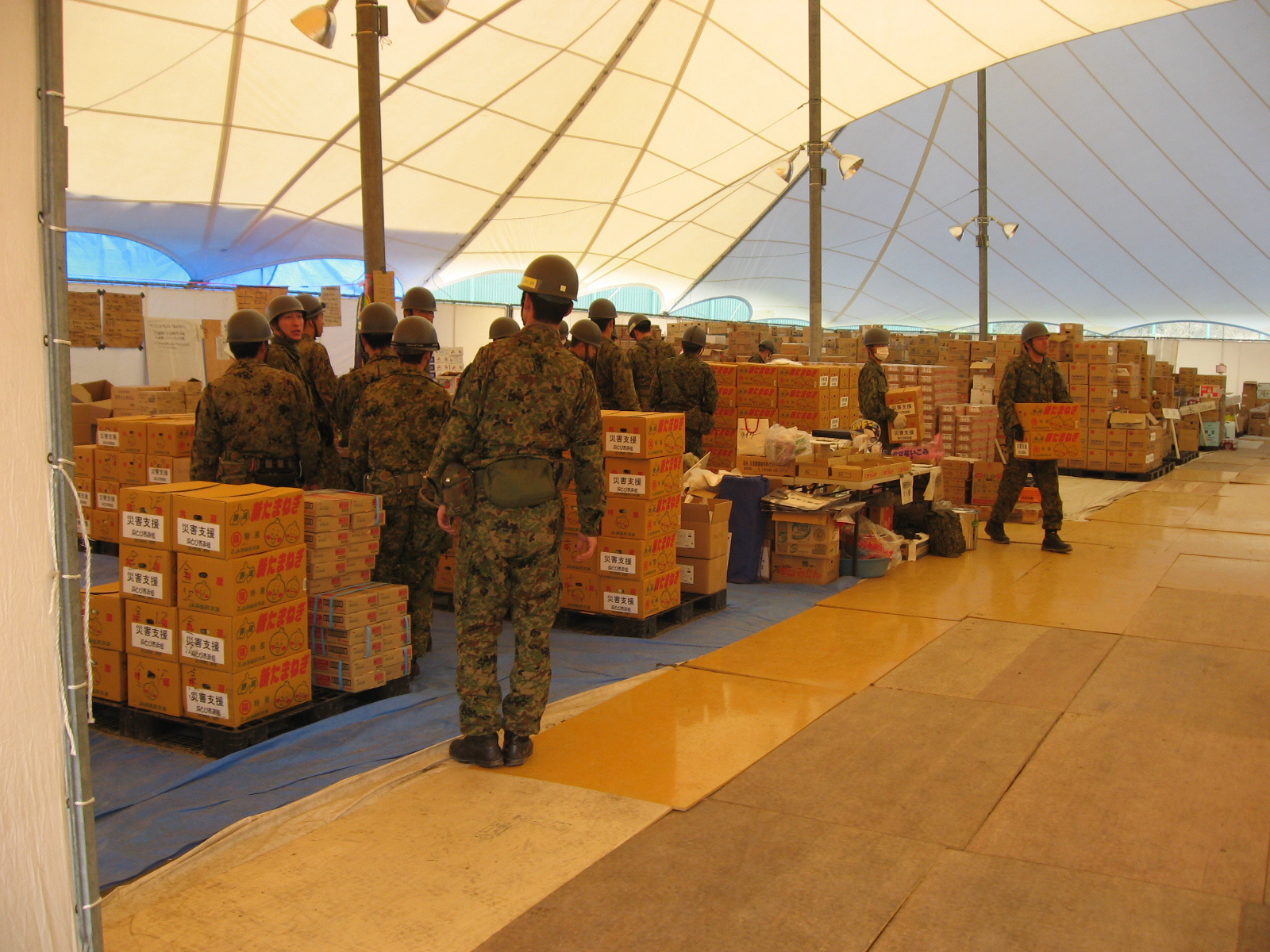 寺野物資集積所の様子 拡大表示 ダウンロード 識別子 : 7170 タイトルよみ : テラノブッシシュウセキジョノヨウス 說明・要約 : 寺野物資集積所テント内の支援物資の状況 作成者(撮影者) : 自衛隊 作成者(撮影者)よみ : ジエイタイ 提供者 : 自衛隊 提供者よみ : ジエイタイ 撮影(作成)場所 : 岩手県上閉伊郡大槌町 寺野 撮影(作成)場所よみ : イワテケンカミヘイグンオオツチチョウ テラノ 作成日・撮影日 : 2011年 4月 11日 カテゴリー : 支援・援助物資 被災者支援 地域 : 小鎚・臼澤地区 備考 : 一般公開 震災事象 住民(住居:避難所~仮設住宅~災害公営住宅) > 避難所運営の機能化・安定化 > 寺野のふれあい運動公園に物資配給拠点を設置