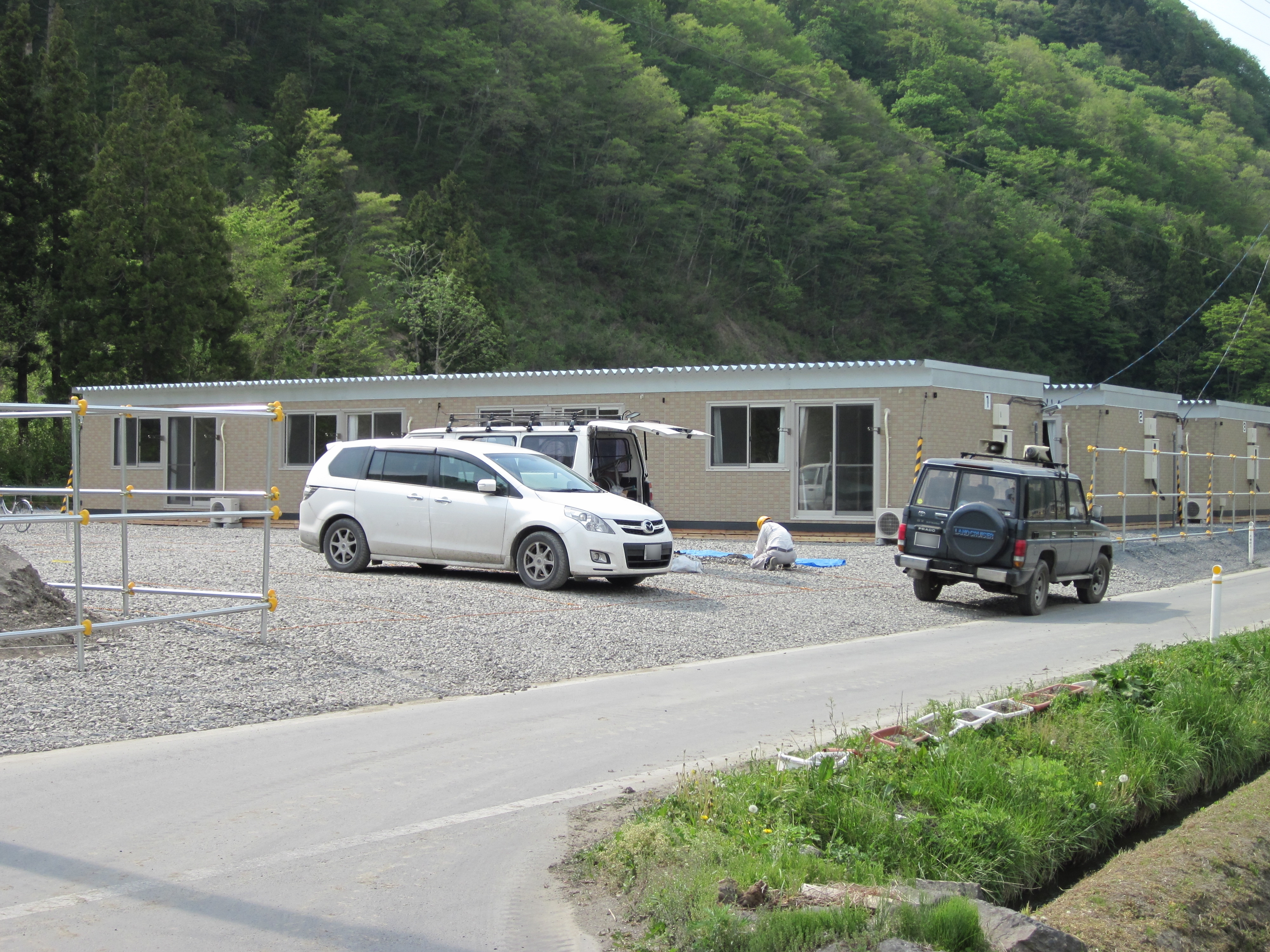 仮設住宅建設 拡大表示 ダウンロード 識別子 : 7185 タイトルよみ : カセツジュウタクケンセツ 說明・要約 : 山の麓に建設された仮設住宅 作成者(撮影者) : 非公開 作成者(撮影者)よみ : ヒコウカイ 提供者 : 非公開 提供者よみ : ヒコウカイ 撮影(作成)場所 : 岩手県上閉伊郡大槌町 撮影(作成)場所よみ : イワテケンカミヘイグンオオツチチョウ 作成日・撮影日 : 2011年 5月 19日 カテゴリー : 仮設住宅 地域 : その他 備考 : 震災事象 住民(住居:避難所~仮設住宅~災害公営住宅) > 避難所運営の機能化・安定化 > 仮設住宅建設の検討開始