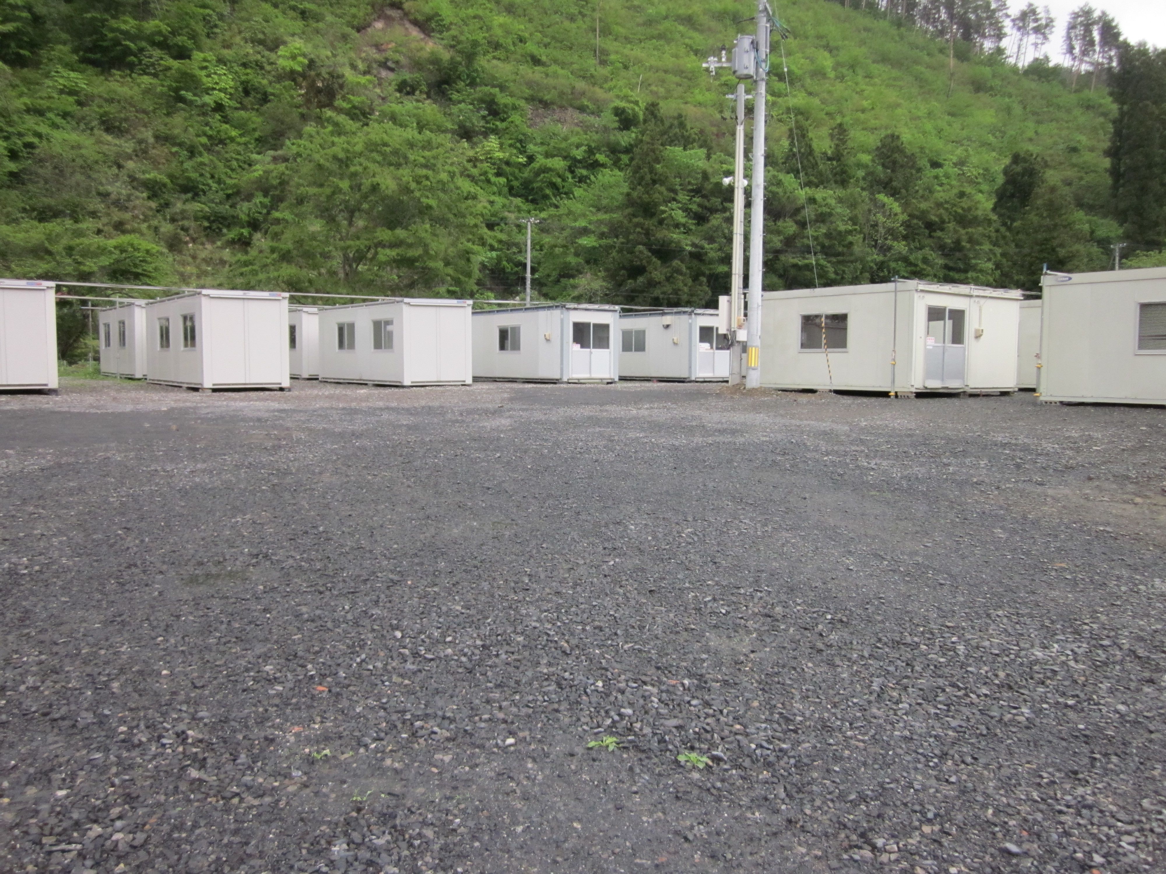 仮設住宅建設 拡大表示 ダウンロード 識別子 : 7251 タイトルよみ : カセツジュウタクケンセツ 說明・要約 : 敷き詰められた砂利の上にプレハブの仮設住宅が立ち並んでいる様子 作成者(撮影者) : 非公開 作成者(撮影者)よみ : ヒコウカイ 提供者 : 非公開 提供者よみ : ヒコウカイ 撮影(作成)場所 : 岩手県上閉伊郡大槌町 小鎚 撮影(作成)場所よみ : イワテケンカミヘイグンオオツチチョウ コヅチ 作成日・撮影日 : 2011年 5月 22日 カテゴリー : 仮設住宅 地域 : 小鎚・臼澤地区 備考 : 震災事象 住民(住居:避難所~仮設住宅~災害公営住宅) > 避難所運営の機能化・安定化 > 仮設住宅建設の検討開始