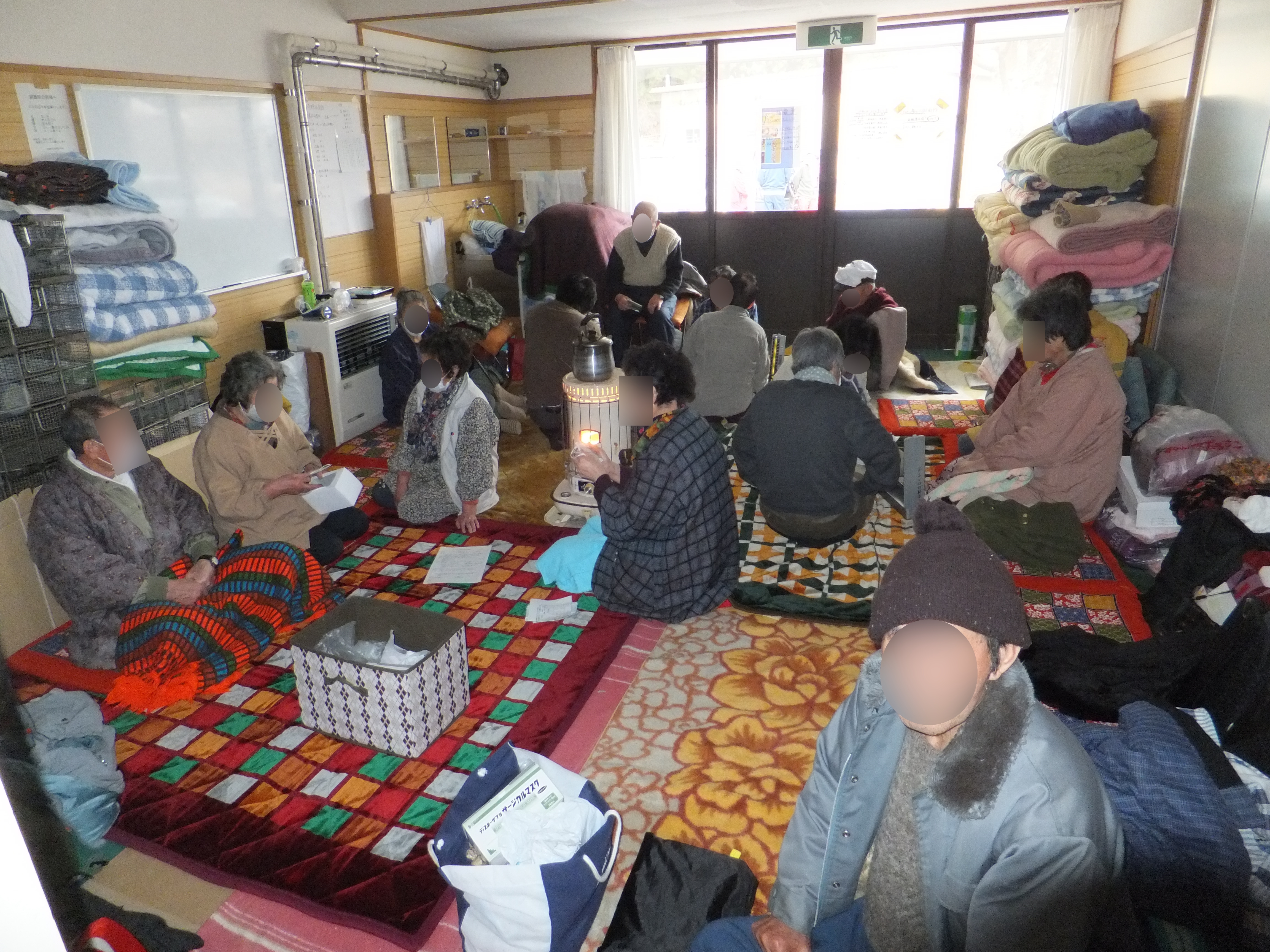 避難所 拡大表示 ダウンロード 識別子 : 7595 タイトルよみ : ヒナンジョ 說明・要約 : 避難所での避難者の様子 作成者(撮影者) : 自衛隊 作成者(撮影者)よみ : ジエイタイ 提供者 : 自衛隊 提供者よみ : ジエイタイ 撮影(作成)場所 : 岩手県上閉伊郡大槌町 大槌町 撮影(作成)場所よみ : イワテケンカミヘイグンオオツチチョウ オオツチチョウ 作成日・撮影日 : 2011年 3月 26日 カテゴリー : 避難所 地域 : その他 備考 :