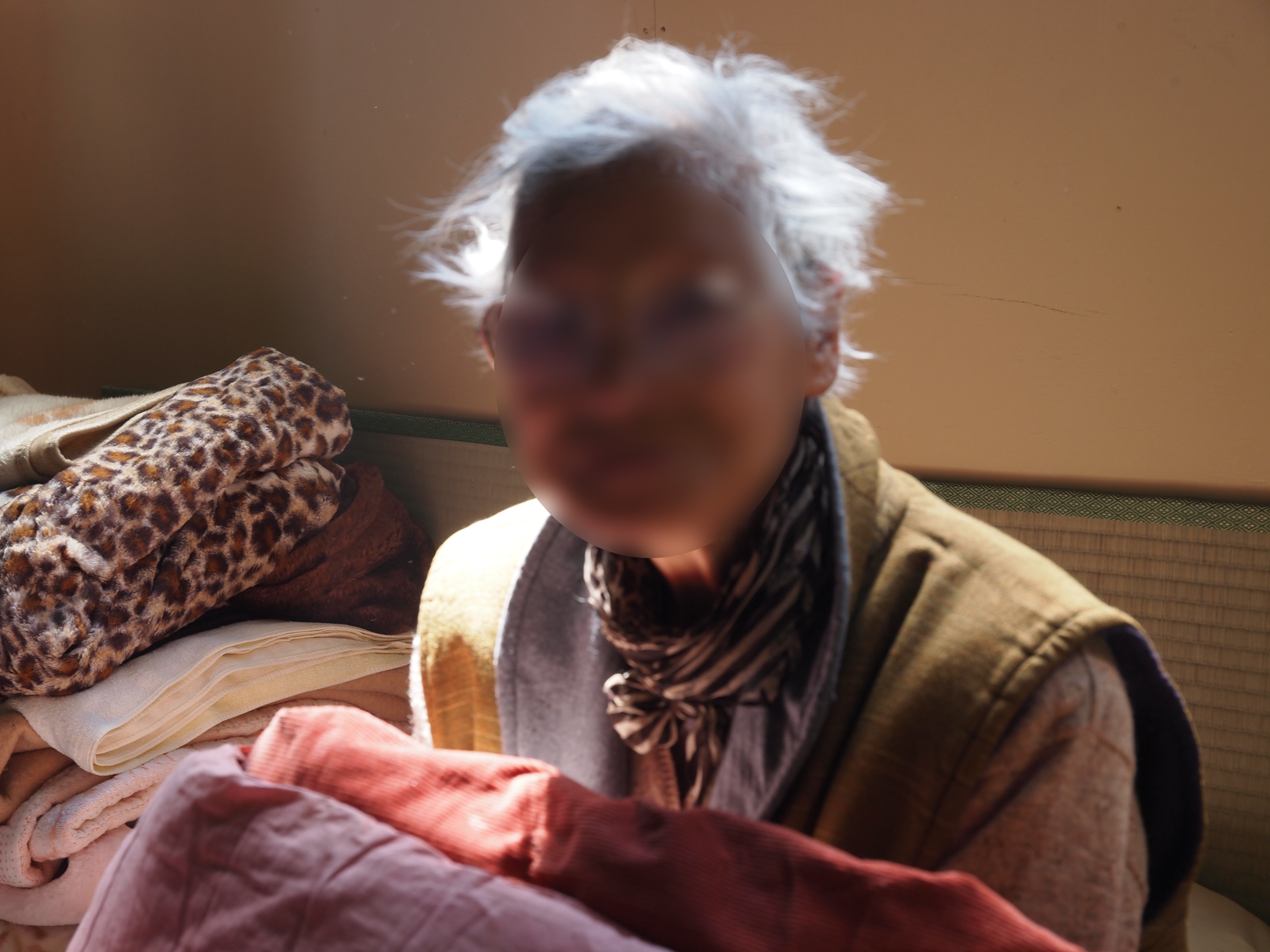 避難所の様子 拡大表示 ダウンロード 識別子 : 7599 タイトルよみ : ヒナンジョノヨウス 說明・要約 : 一人布団で暖を取っている高齢女性 作成者(撮影者) : 大槌町 作成者(撮影者)よみ : オオツチチョウ 提供者 : 提供者よみ : 撮影(作成)場所 : 岩手県上閉伊郡大槌町 大槌町 撮影(作成)場所よみ : イワテケンカミヘイグンオオツチチョウ オオツチチョウ 作成日・撮影日 : 2011年 4月 5日 カテゴリー : 避難所 地域 : その他 備考 :
