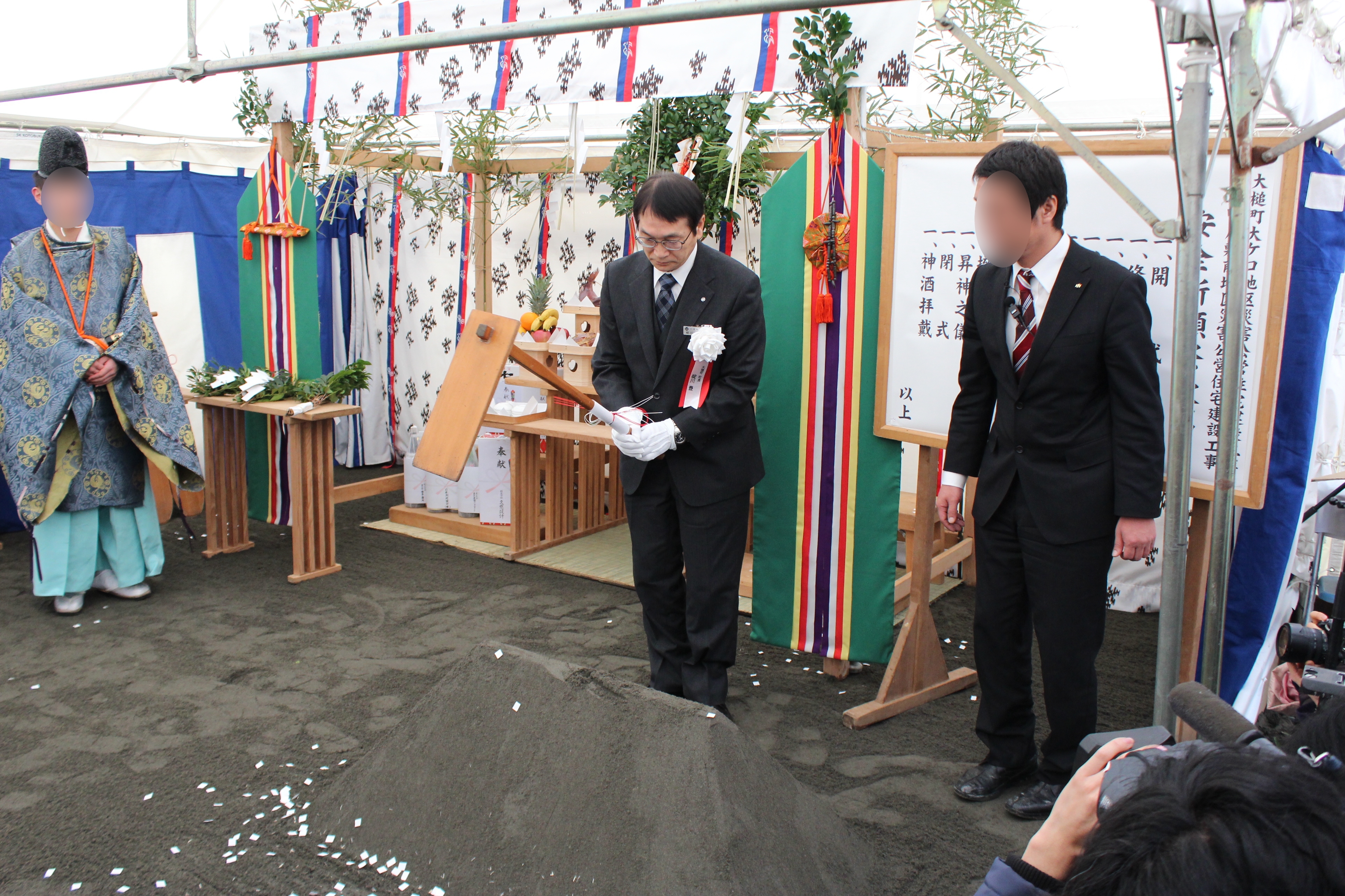 大ケ口・屋敷前地区の災害公営住宅建設工事安全祈願祭の様子