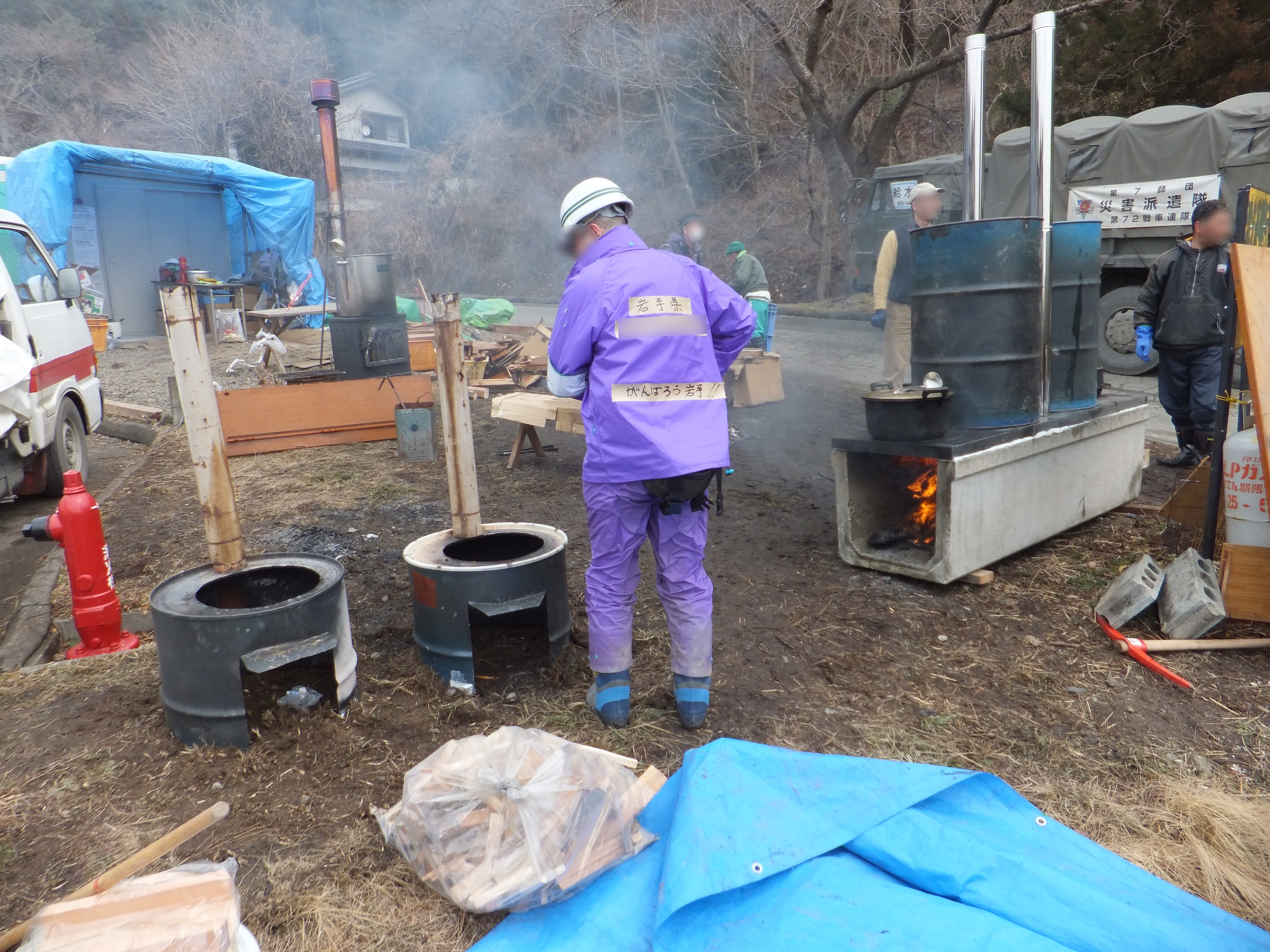避難所 拡大表示 ダウンロード 識別子 : 7629 タイトルよみ : ヒナンジョ 說明・要約 : ドラム缶で造った「たき火ボイラーかまど」の様子 作成者(撮影者) : 大槌町 作成者(撮影者)よみ : オオツチチョウ 提供者 : 提供者よみ : 撮影(作成)場所 : 岩手県上閉伊郡大槌町 赤浜 撮影(作成)場所よみ : イワテケンカミヘイグンオオツチチョウ アカハマ 作成日・撮影日 : 2011年 3月 26日 カテゴリー : 避難所 地域 : 赤浜地区 備考 :