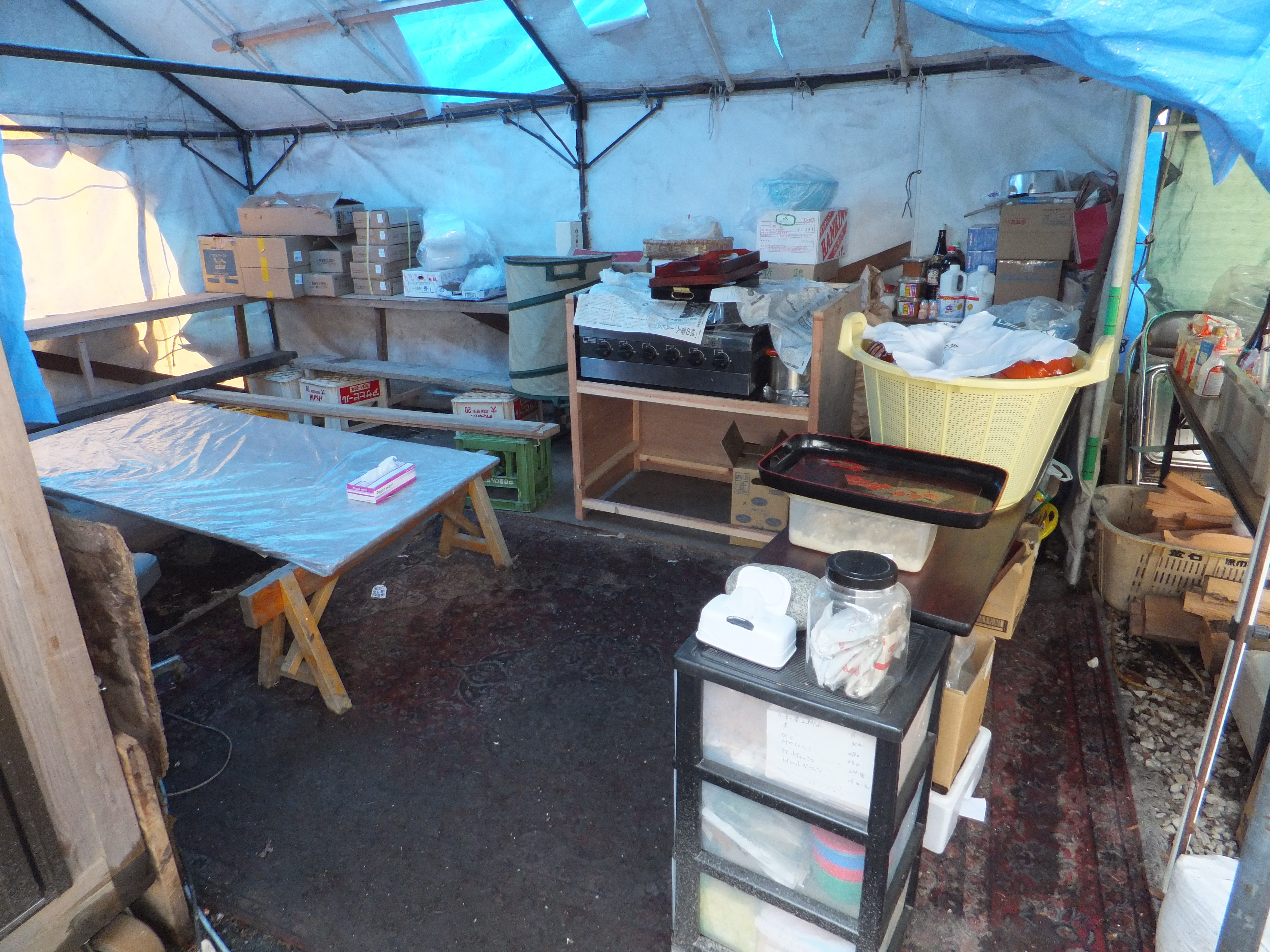 避難所 拡大表示 ダウンロード 識別子 : 7639 タイトルよみ : ヒナンジョ 說明・要約 : 外のテントに収められた物資 作成者(撮影者) : 大槌町 作成者(撮影者)よみ : オオツチチョウ 提供者 : 提供者よみ : 撮影(作成)場所 : 岩手県上閉伊郡大槌町 撮影(作成)場所よみ : イワテケンカミヘイグンオオツチチョウ 作成日・撮影日 : 2011年 3月 26日 カテゴリー : 避難所 地域 : 安渡地区 備考 :