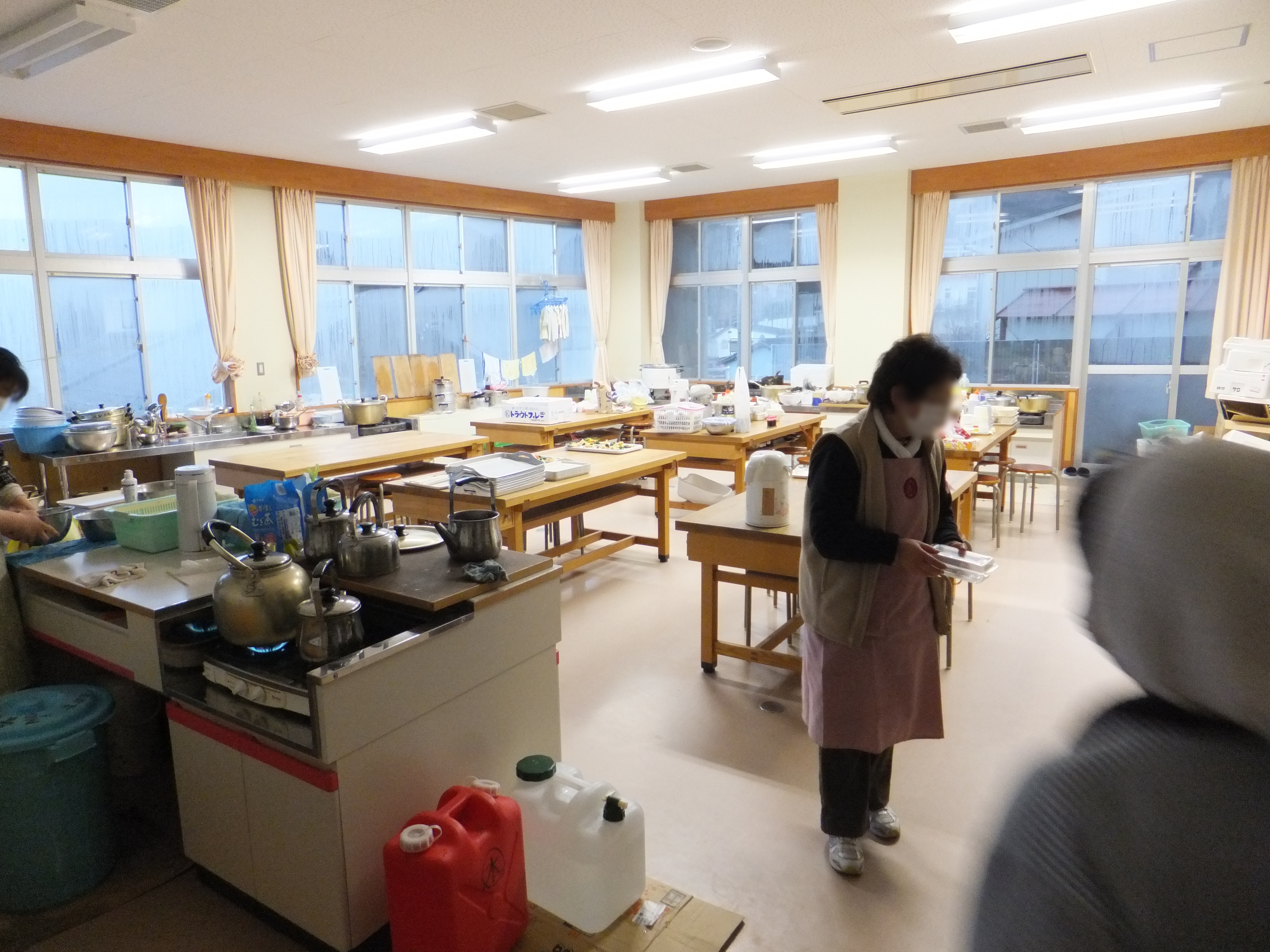避難所(吉里吉里小学校) 拡大表示 ダウンロード 識別子 : 7661 タイトルよみ : ヒナンジョ(キリキリショウガッコウ) 說明・要約 : 避難所内炊事場の様子 作成者(撮影者) : 大槌町 作成者(撮影者)よみ : オオツチチョウ 提供者 : 提供者よみ : 撮影(作成)場所 : 岩手県上閉伊郡大槌町 吉里吉里 大槌町立吉里吉里学園小学部 撮影(作成)場所よみ : イワテケンカミヘイグンオオツチチョウ キリキリ オオツチチョウリツキリキリガクエンショウガクブ 作成日・撮影日 : 2011年 3月 26日 カテゴリー : 避難所 くらし・文化 地域 : 吉里吉里地区 備考 : 関連アーカイブ 避難所での食事準備(現、大槌町立吉里吉里学園小学部校舎内) 吉里吉里小付近の保育園で、仮設風呂製作 炊き出しの食事風景(大槌町立吉里吉里学園小学部校庭) 吉里吉里小学校のテント 避難所となっている、吉里吉里小校庭の状況 吉里吉里小学校外の仮設トイレ 避難生活と避難情報(大槌町立吉里吉里学園小学部) 避難生活と避難情報(大槌町立吉里吉里学園小学部) マッサージ用簡易ベッド(大槌町立吉里吉里学園小学部) 避難所(吉里吉里小学校校庭) 吉里吉里小で作業する人々 吉里吉里小学校 校舎の時計 吉里吉里小学校付近の被災状況 吉里吉里小学校遠景