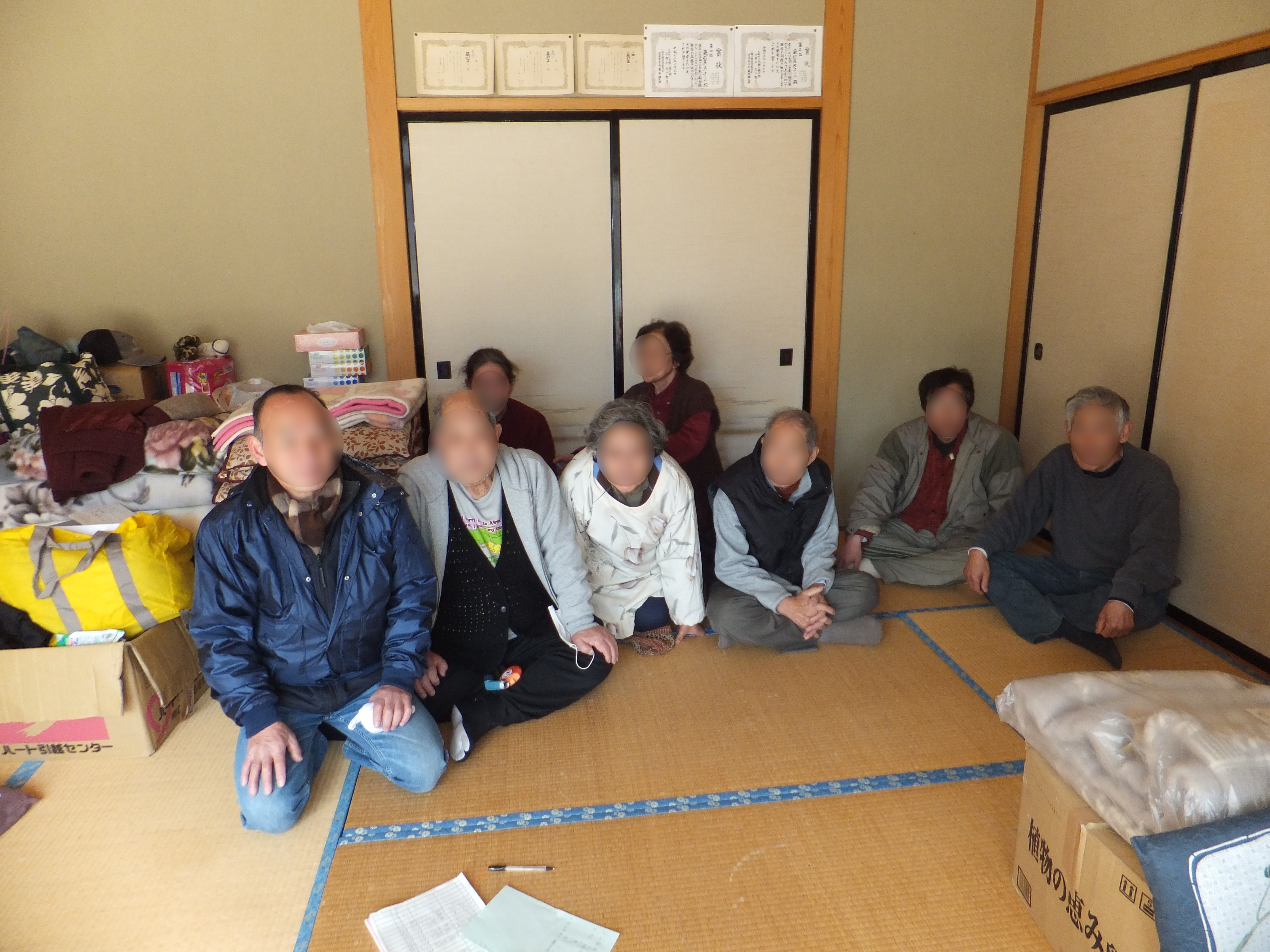 避難所 拡大表示 ダウンロード 識別子 : 7671 タイトルよみ : ヒナンジョ 說明・要約 : 避難所内部の様子、畳の部屋 作成者(撮影者) : 大槌町 作成者(撮影者)よみ : オオツチチョウ 提供者 : 提供者よみ : 撮影(作成)場所 : 岩手県上閉伊郡大槌町 蕨打直 撮影(作成)場所よみ : イワテケンカミヘイグンオオツチチョウ ワラビウチナ 作成日・撮影日 : 2011年 3月 27日 カテゴリー : 避難所 地域 : 小鎚・臼澤地区 備考 :