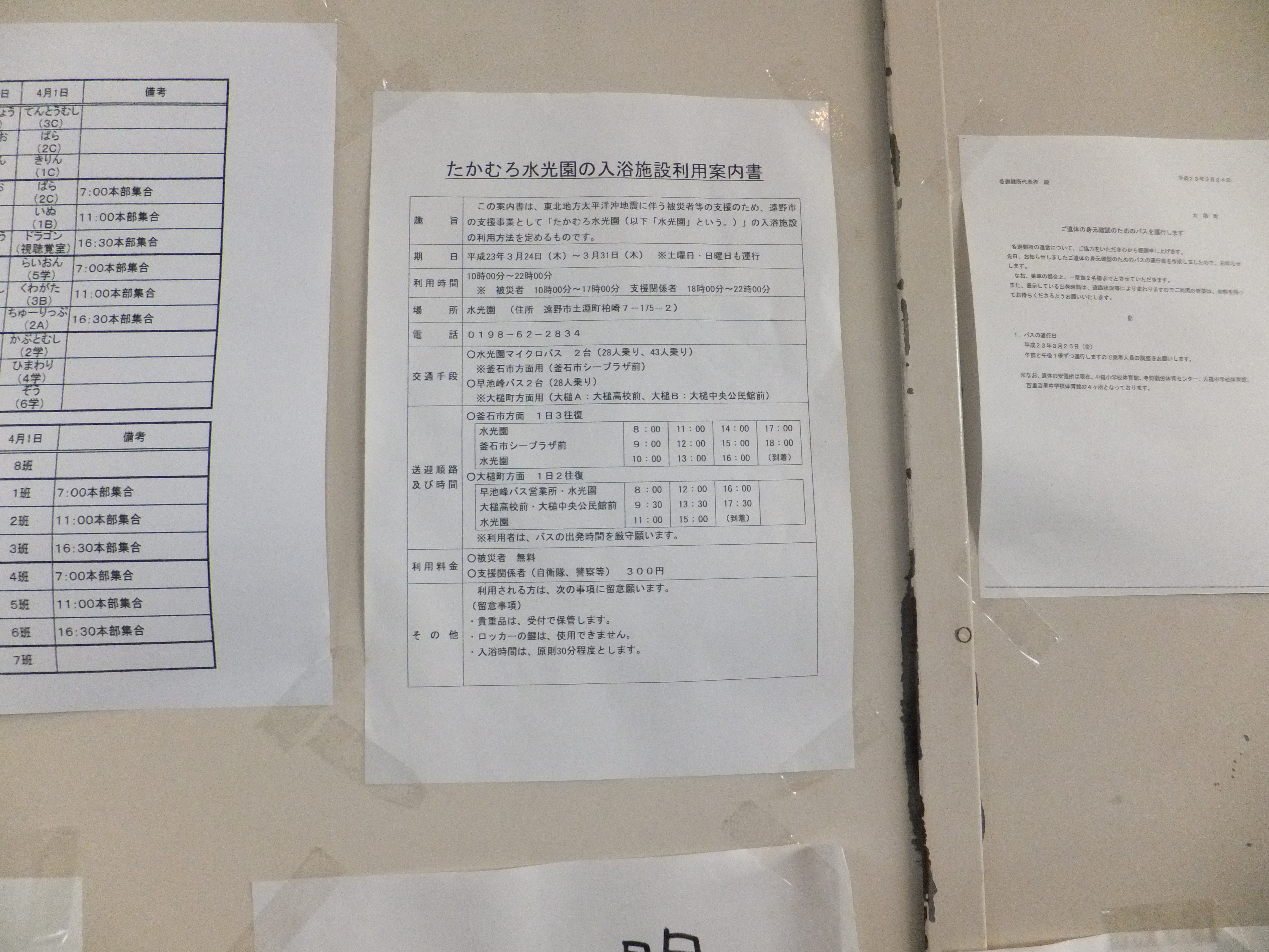 避難所に掲示してある入浴施設利用案内