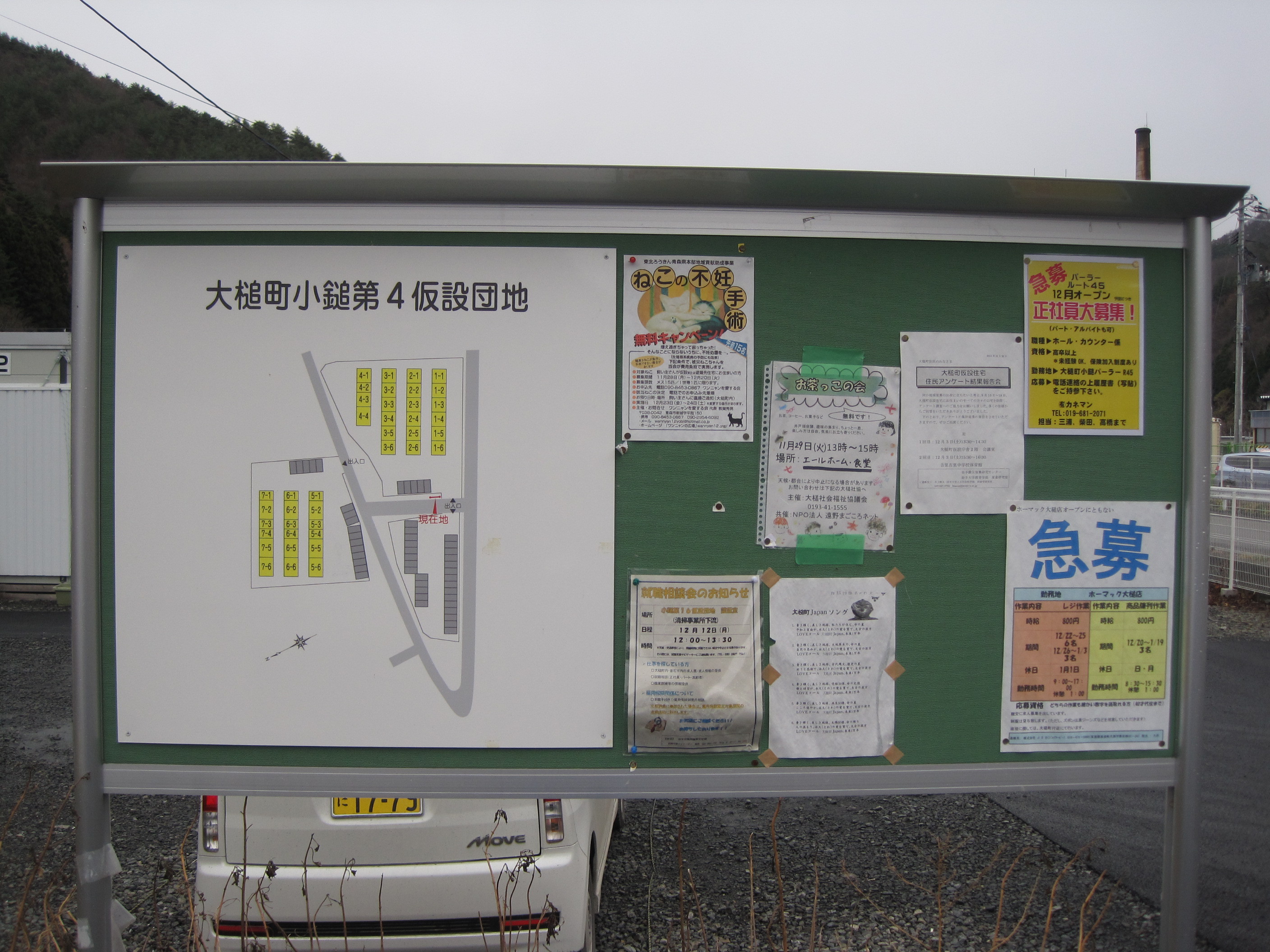 小鎚第4仮設団地1~7号棟案内図 拡大表示 ダウンロード 識別子 : 7754 タイトルよみ : コヅチダイヨンカセツダンチ1から7ゴウトウアンナイズ 說明・要約 : 小鎚第4仮設団地1~7号棟の案内図 作成者(撮影者) : 大槌町 作成者(撮影者)よみ : オオツチチョウ 提供者 : 提供者よみ : 撮影(作成)場所 : 岩手県上閉伊郡大槌町 撮影(作成)場所よみ : イワテケンカミヘイグンオオツチチョウ 作成日・撮影日 : 2011年 11月 30日 カテゴリー : 仮設住宅 地域 : 小鎚・臼澤地区 備考 :