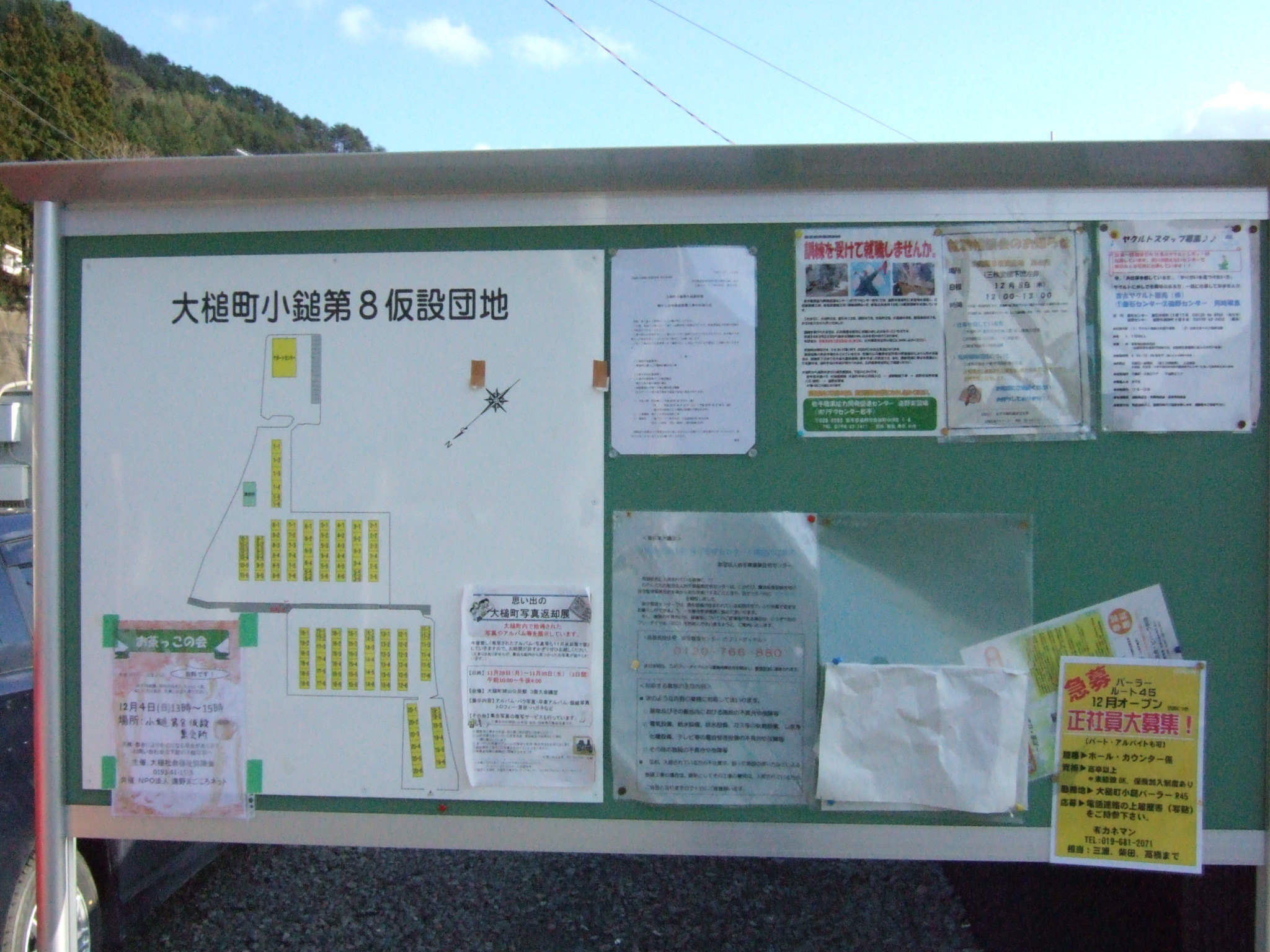 小鎚第8仮設団地案内図 拡大表示 ダウンロード 識別子 : 7802 タイトルよみ : コヅチダイハチカセツダンチアンナイズ 說明・要約 : 小鎚第8仮設団地の案内図 作成者(撮影者) : 大槌町 作成者(撮影者)よみ : オオツチチョウ 提供者 : 提供者よみ : 撮影(作成)場所 : 岩手県上閉伊郡大槌町 撮影(作成)場所よみ : イワテケンカミヘイグンオオツチチョウ 作成日・撮影日 : 2011年 12月 5日 カテゴリー : 仮設住宅 地域 : 小鎚・臼澤地区 備考 :