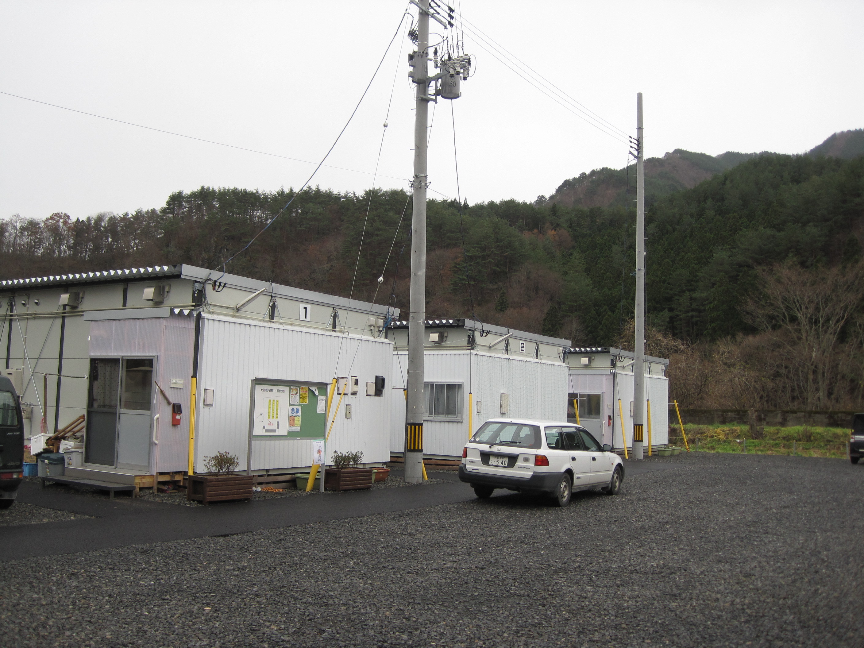 小鎚第11仮設団地 拡大表示 ダウンロード 識別子 : 7831 タイトルよみ : コヅチダイジュウイチカセツダンチ 說明・要約 : 小鎚第11仮設団地の様子 作成者(撮影者) : 大槌町 作成者(撮影者)よみ : オオツチチョウ 提供者 : 提供者よみ : 撮影(作成)場所 : 岩手県上閉伊郡大槌町 撮影(作成)場所よみ : イワテケンカミヘイグンオオツチチョウ 作成日・撮影日 : 2011年 11月 30日 カテゴリー : 仮設住宅 地域 : 小鎚・臼澤地区 備考 :