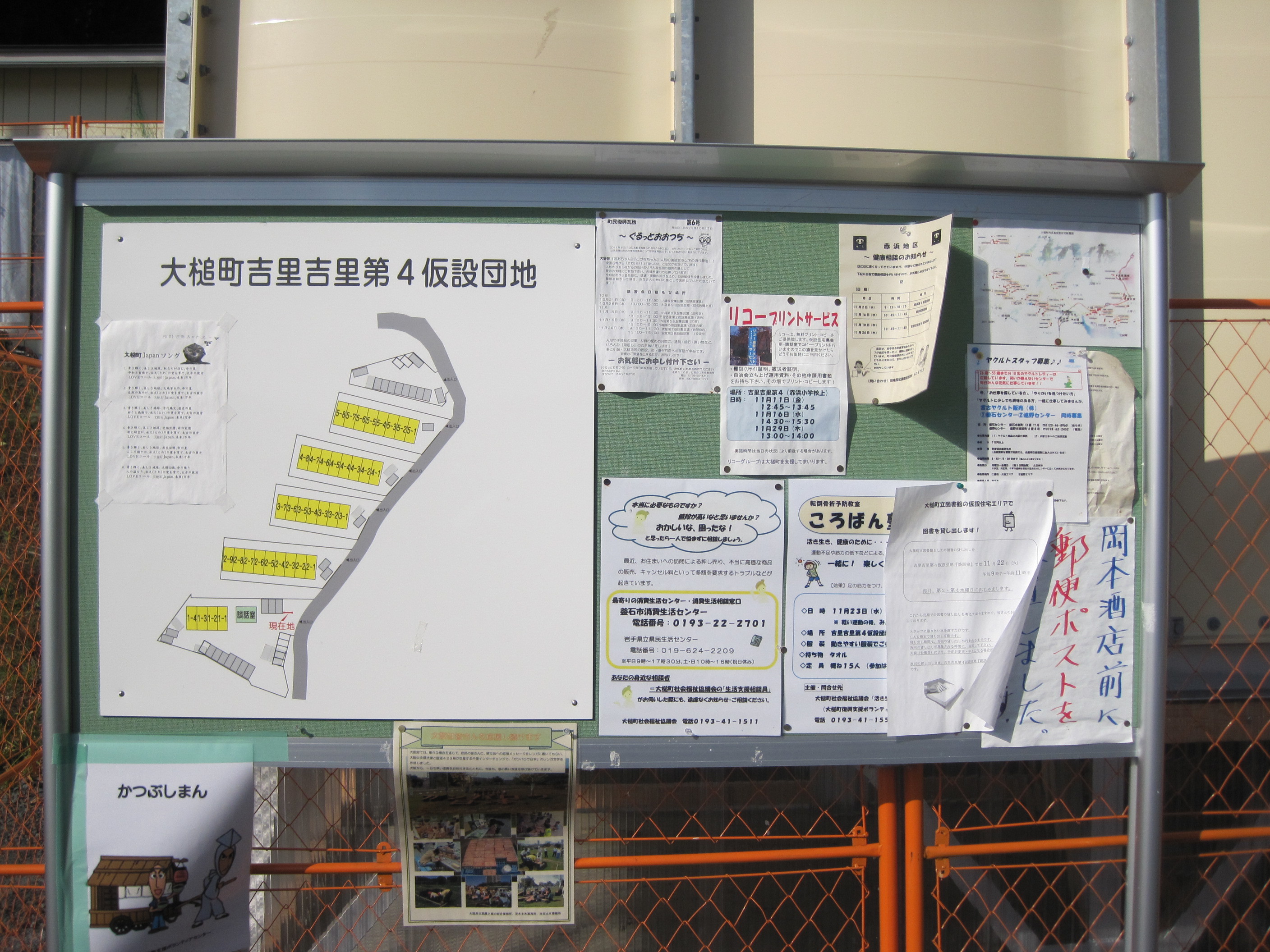 吉里吉里第4仮設団地案内図 拡大表示 ダウンロード 識別子 : 8286 タイトルよみ : キリキリダイヨンカセツダンチアンナイズ 說明・要約 : 吉里吉里第4仮設団地の案内図 作成者(撮影者) : 大槌町 作成者(撮影者)よみ : オオツチチョウ 提供者 : 提供者よみ : 撮影(作成)場所 : 岩手県上閉伊郡大槌町 浪板 撮影(作成)場所よみ : イワテケンカミヘイグンオオツチチョウ ナミイタ 作成日・撮影日 : 2011年 11月 21日 カテゴリー : 仮設住宅 地域 : 浪板地区 備考 :