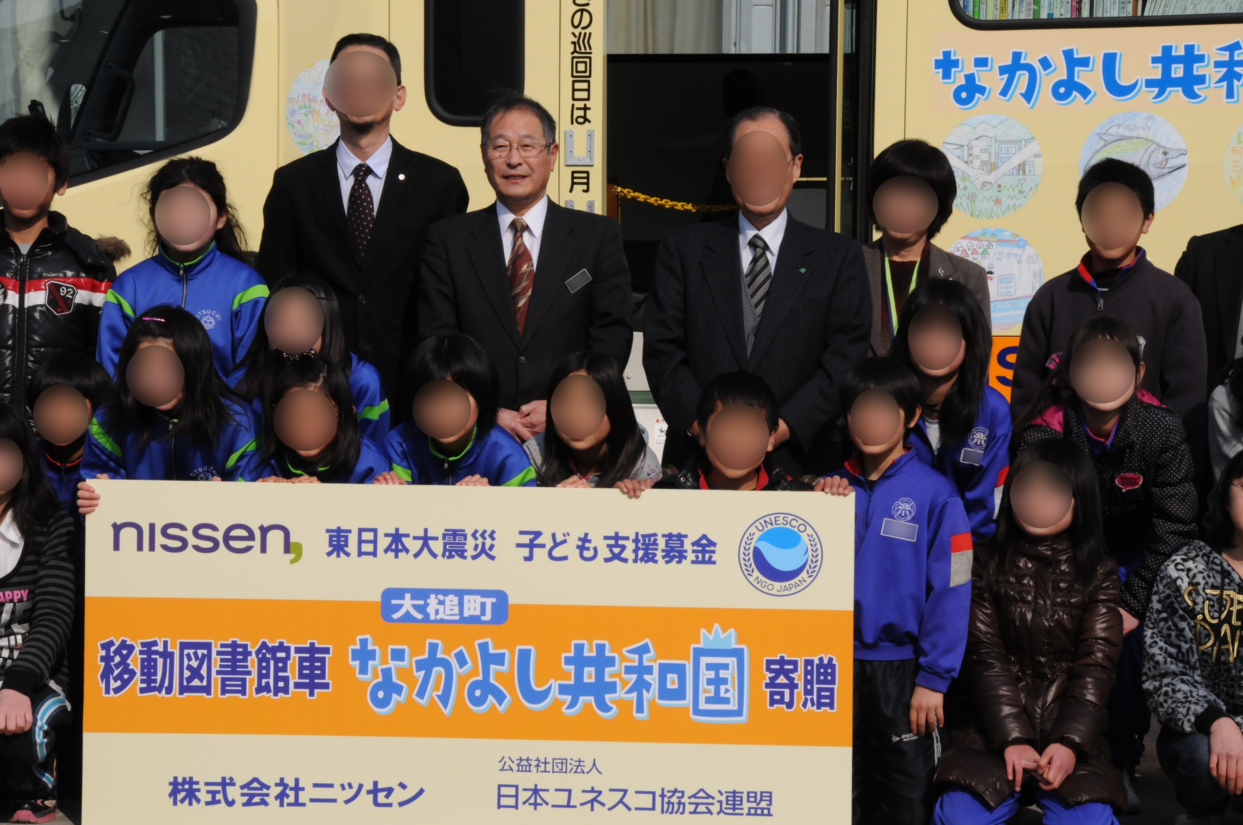 移動図書館車「なかよし共和国」寄贈式典 拡大表示 ダウンロード 識別子 : 9340 タイトルよみ : イドウトショカンシャ「ナカヨシキョウワコク」キゾウシキテン 說明・要約 : 小中学校仮設校舎校庭で開催された移動図書館車「なかよし共和国」お披露目会の様子 作成者(撮影者) : 大槌町 作成者(撮影者)よみ : オオツチチョウ 提供者 : 提供者よみ : 撮影(作成)場所 : 岩手県上閉伊郡大槌町 撮影(作成)場所よみ : イワテケンカミヘイグンオオツチチョウ 作成日・撮影日 : 2012年 2月 22日 カテゴリー : 学校・教育 地域 : 小鎚・臼澤地区 備考 : 震災事象 住民(ふるさと科 学校 住民の災害対策 イベント) > 仮設住宅 (1年〜2年目 暮らし再生・復興計画づくり)期 > 移動図書館車が寄贈