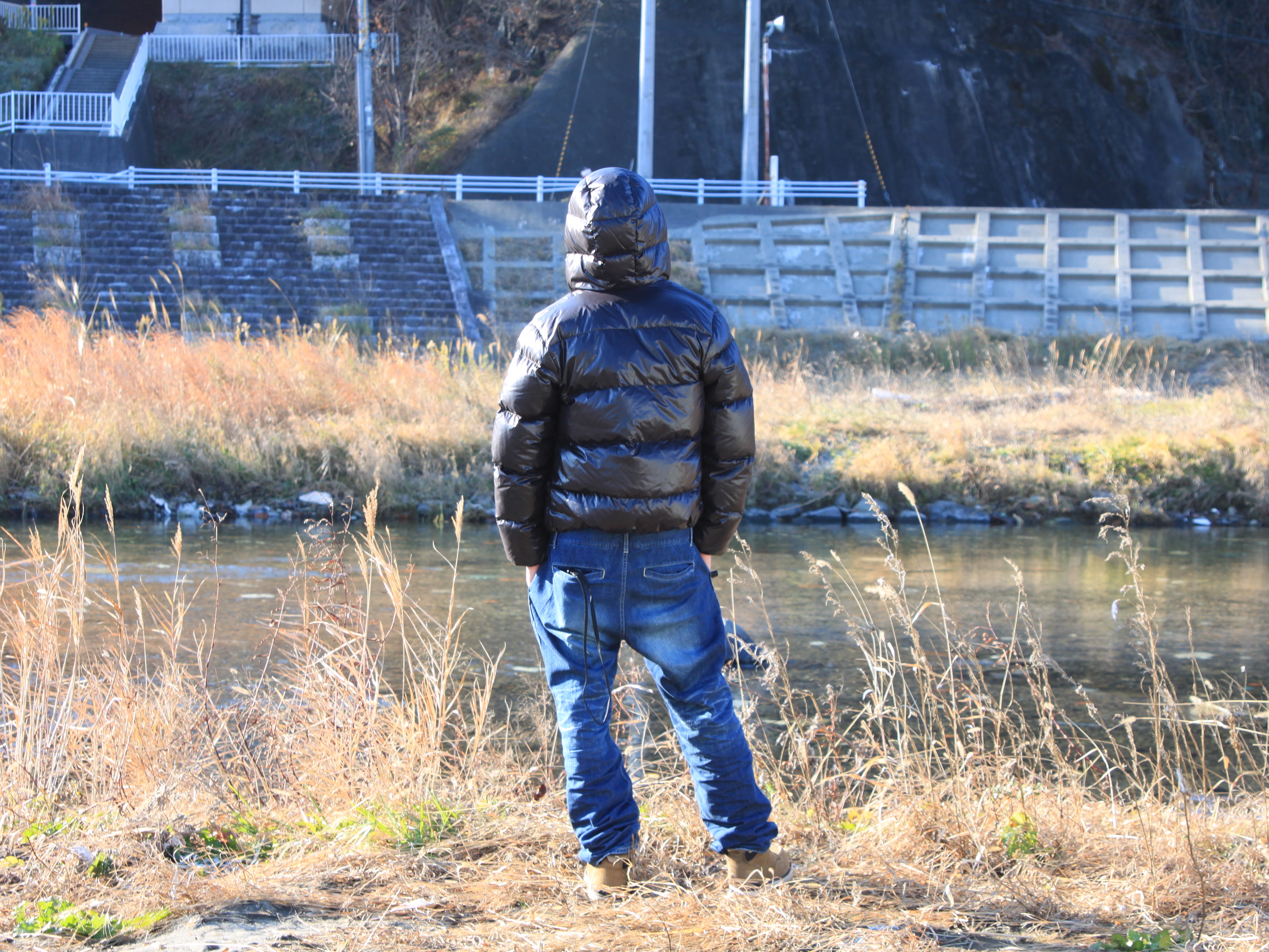 大槌川を見ている男性の様子