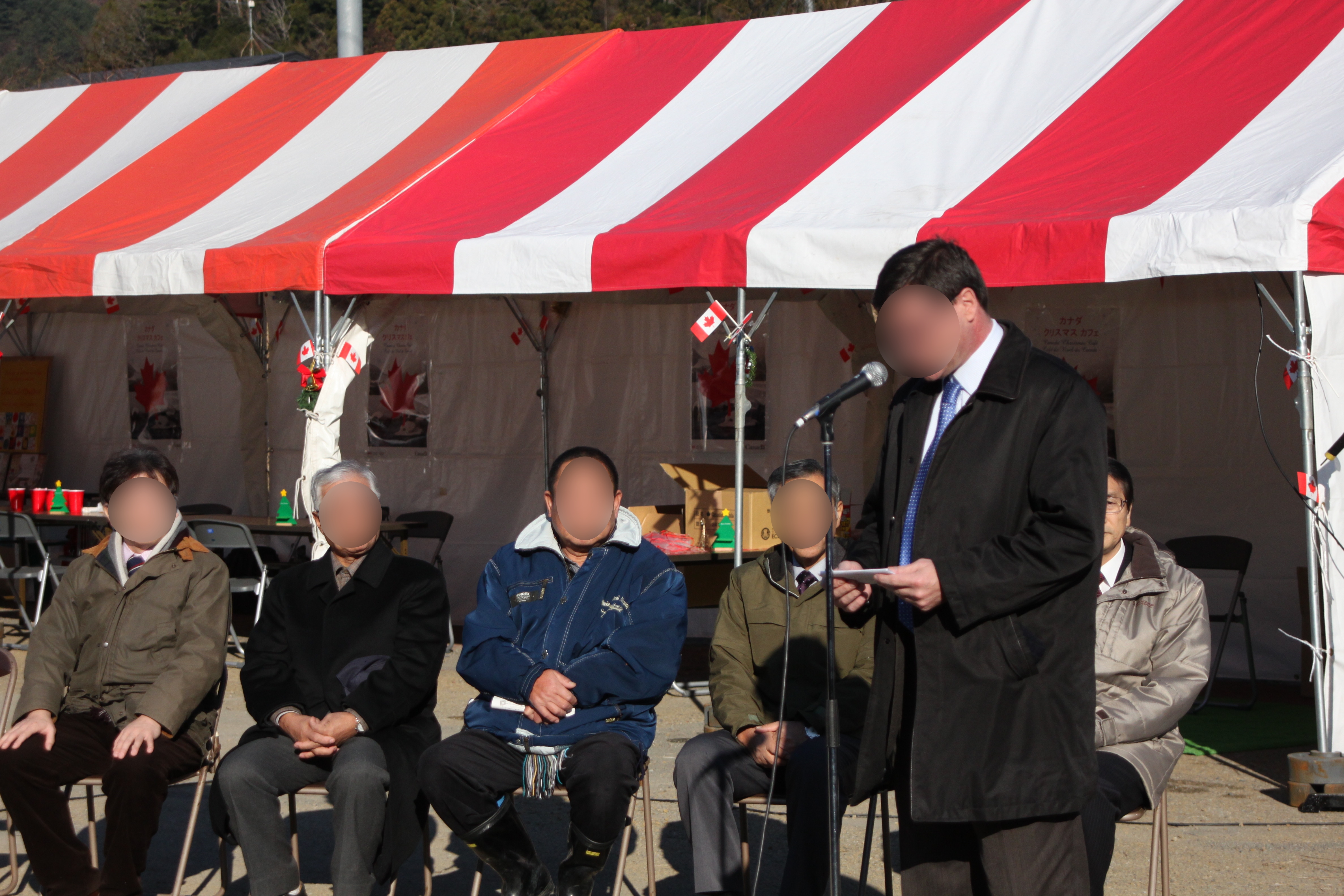 おおつち鮭まつり開会式でのカナダからの参加者の挨拶の様子