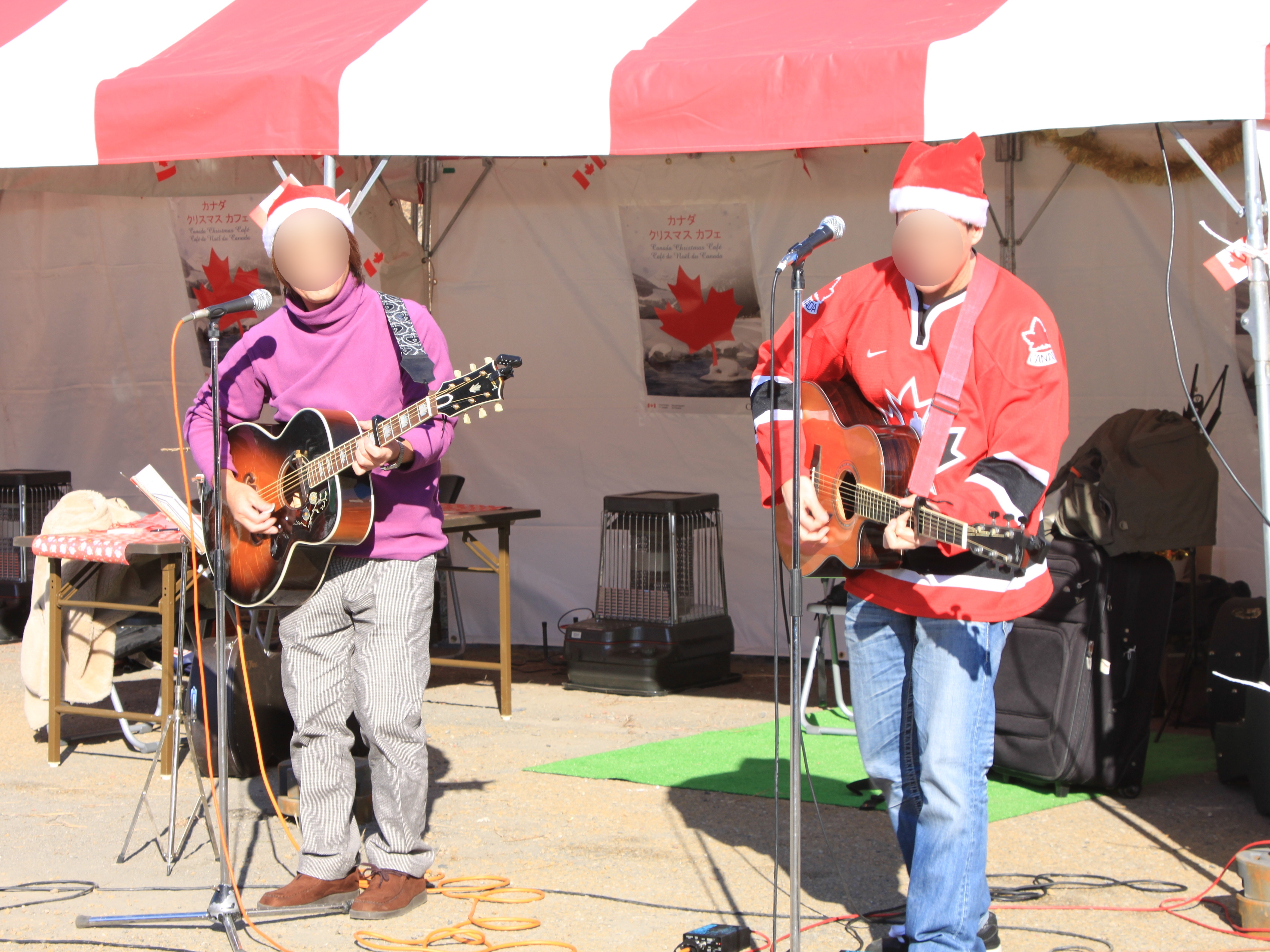 おおつち鮭まつりに参加したカナダ人が歌っている様子