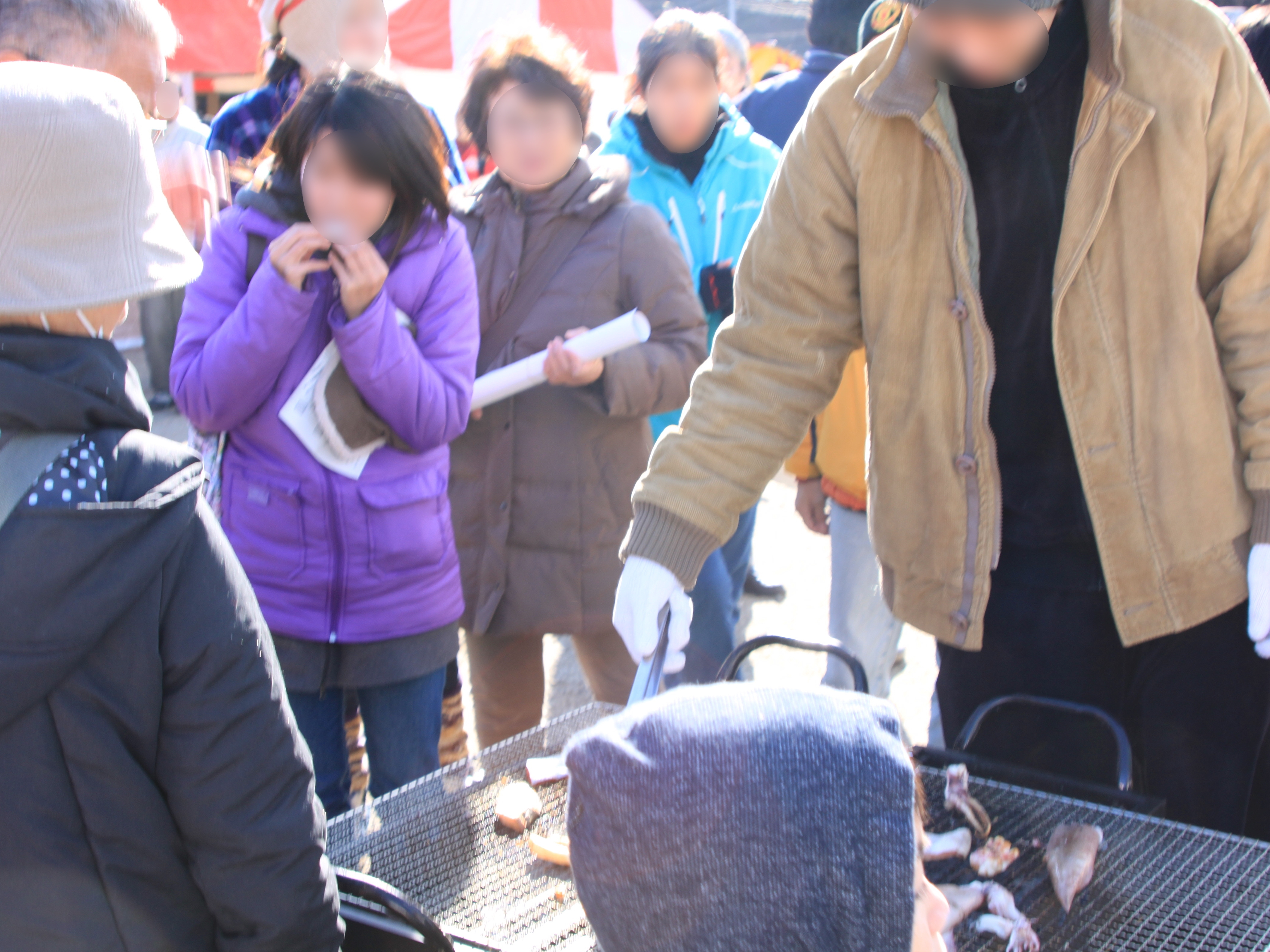 おおつち鮭まつりでイカの網焼きを振る舞っている様子