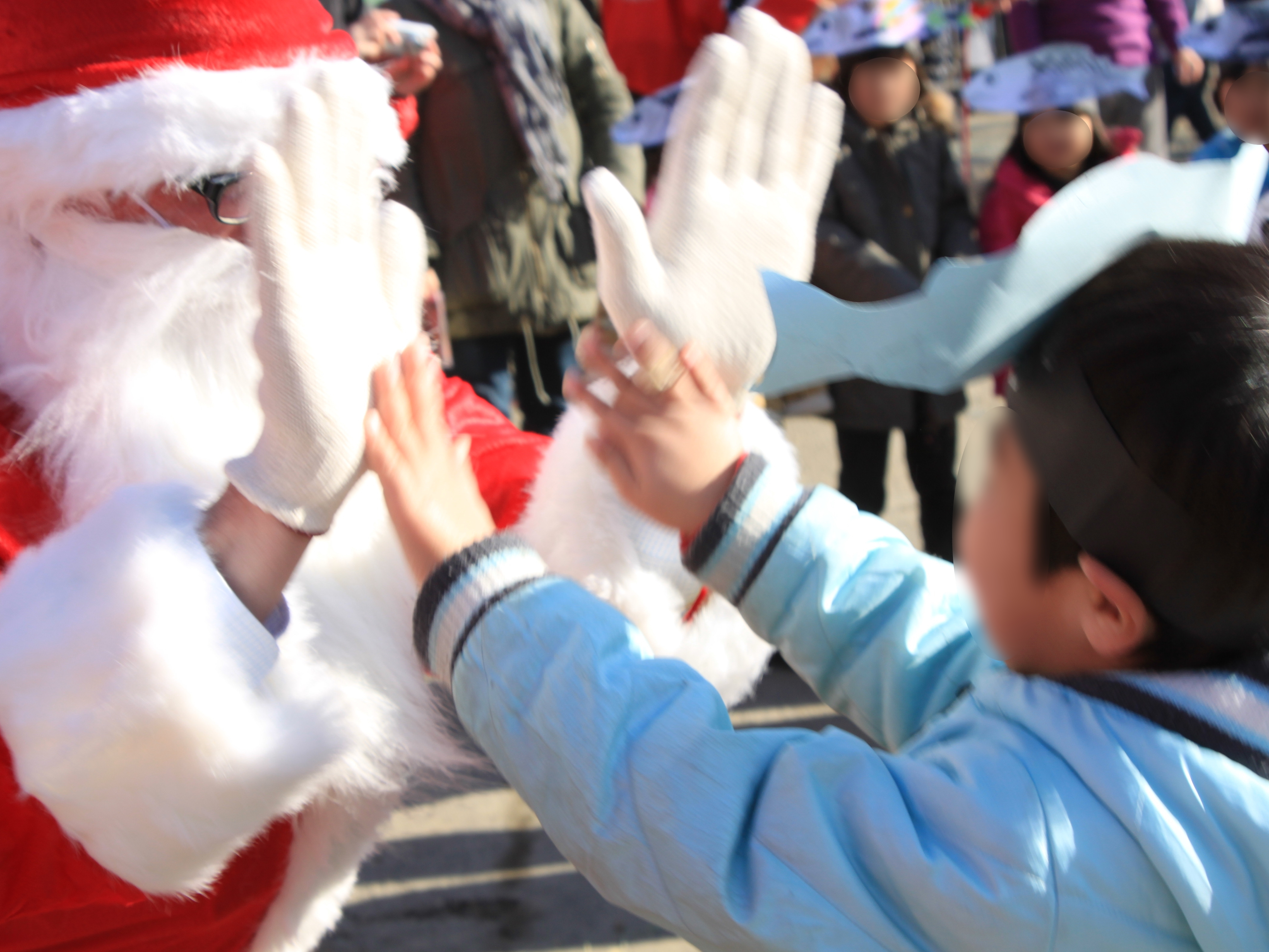 おおつち鮭まつり会場での参加者とサンタクロースの様子