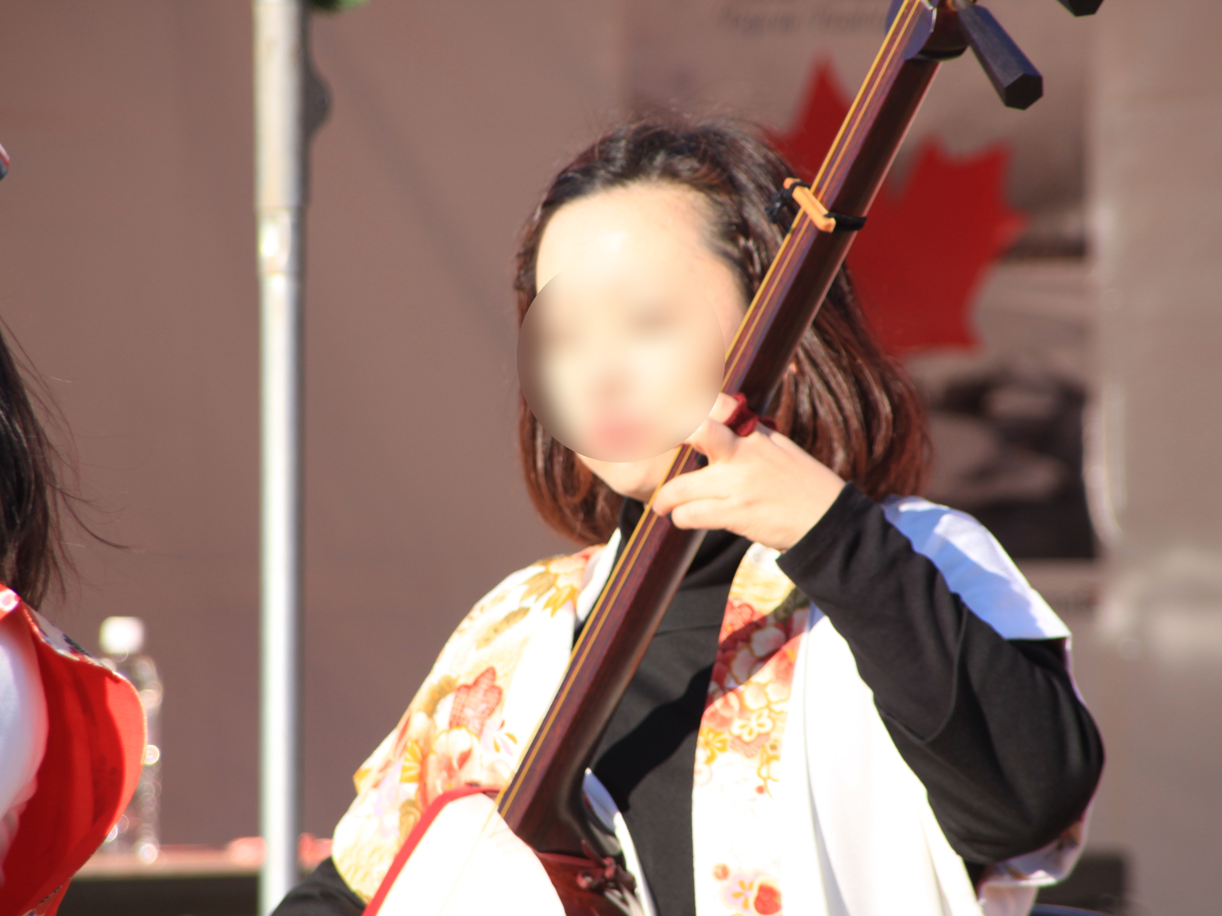 おおつち鮭まつりの会場で三味線を演奏している人の様子
