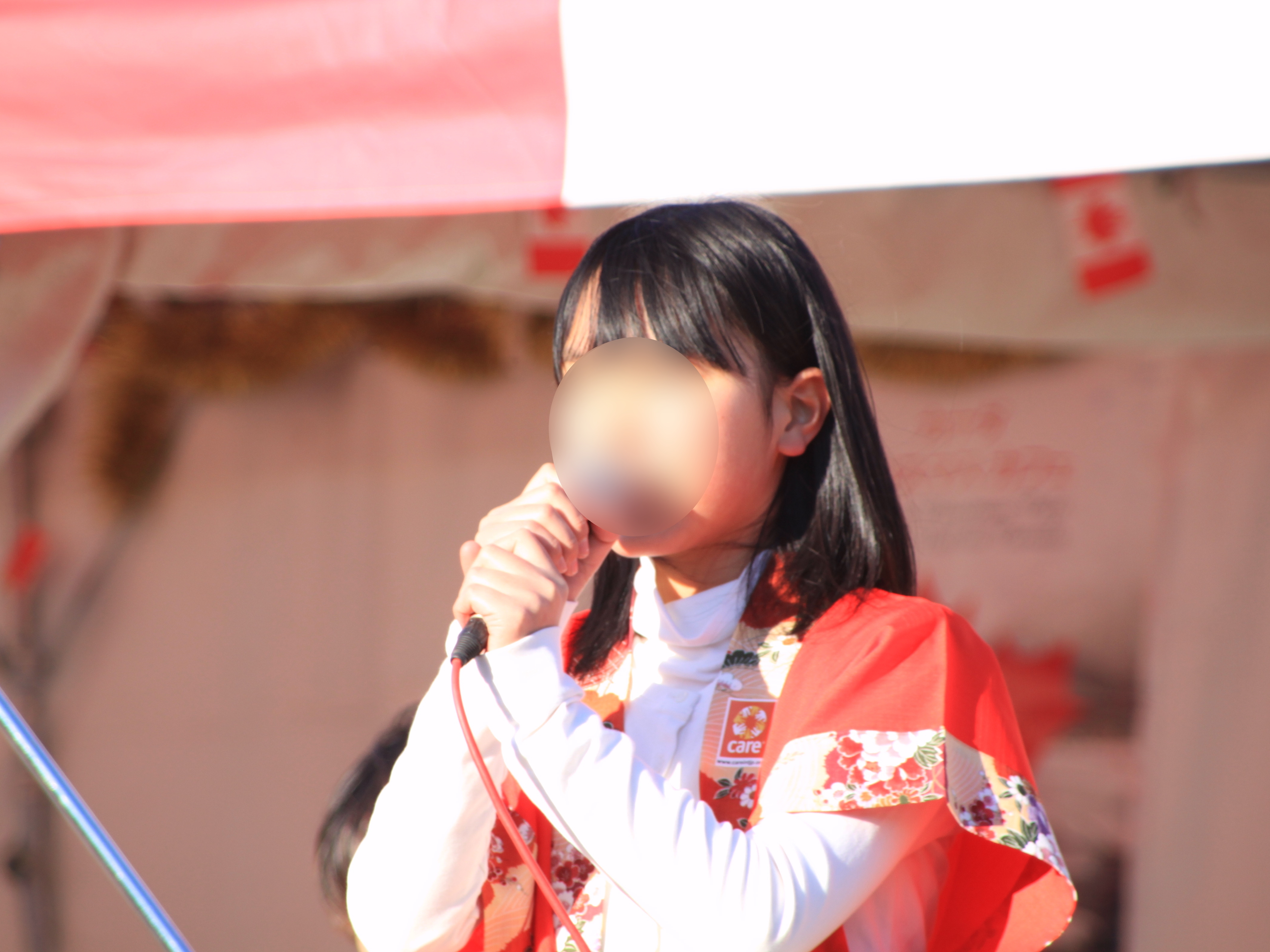 おおつち鮭まつりの会場で三味線に合わせて歌っている人の様子
