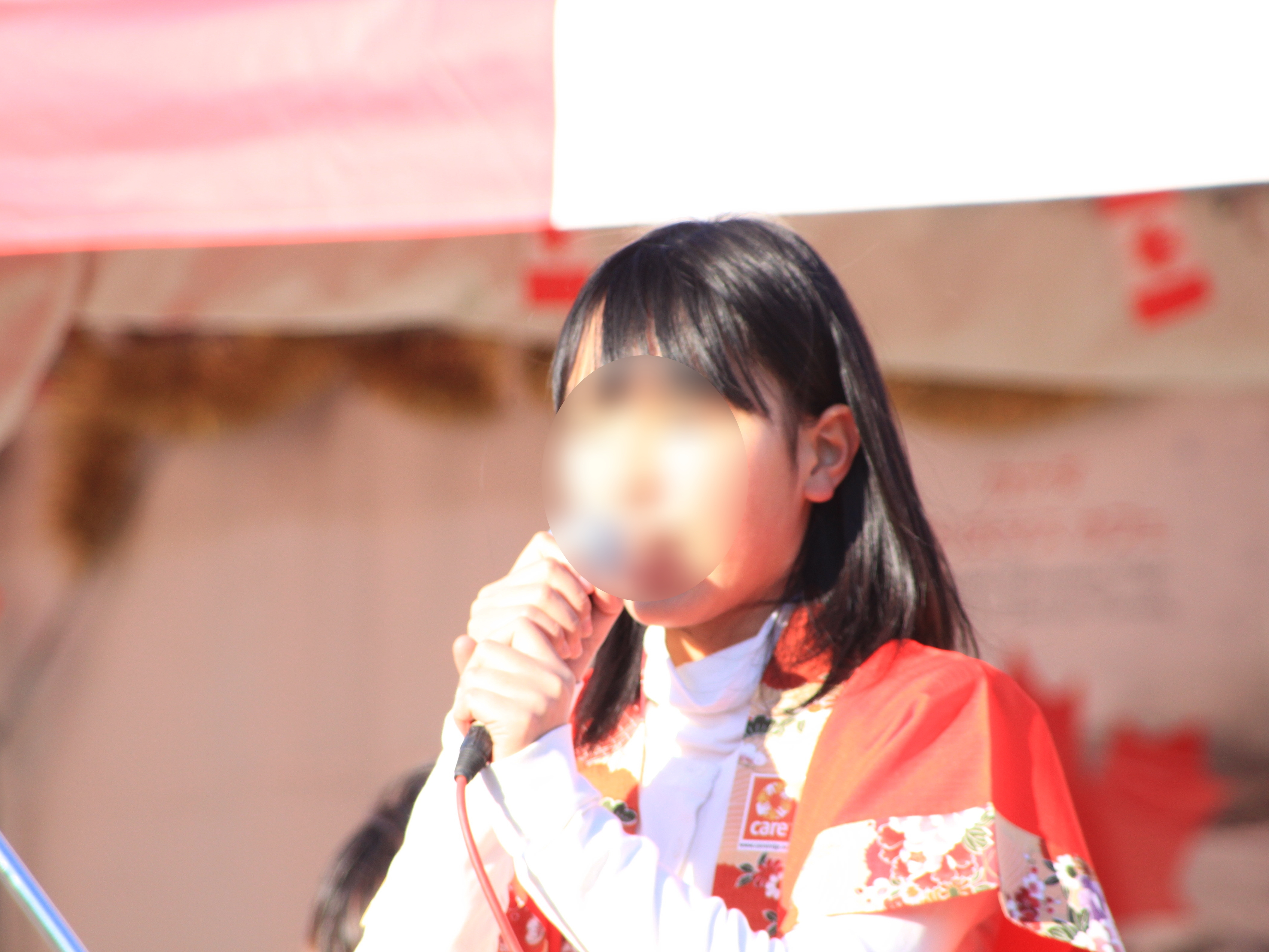 おおつち鮭まつりの会場で三味線に合わせて歌っている人の様子