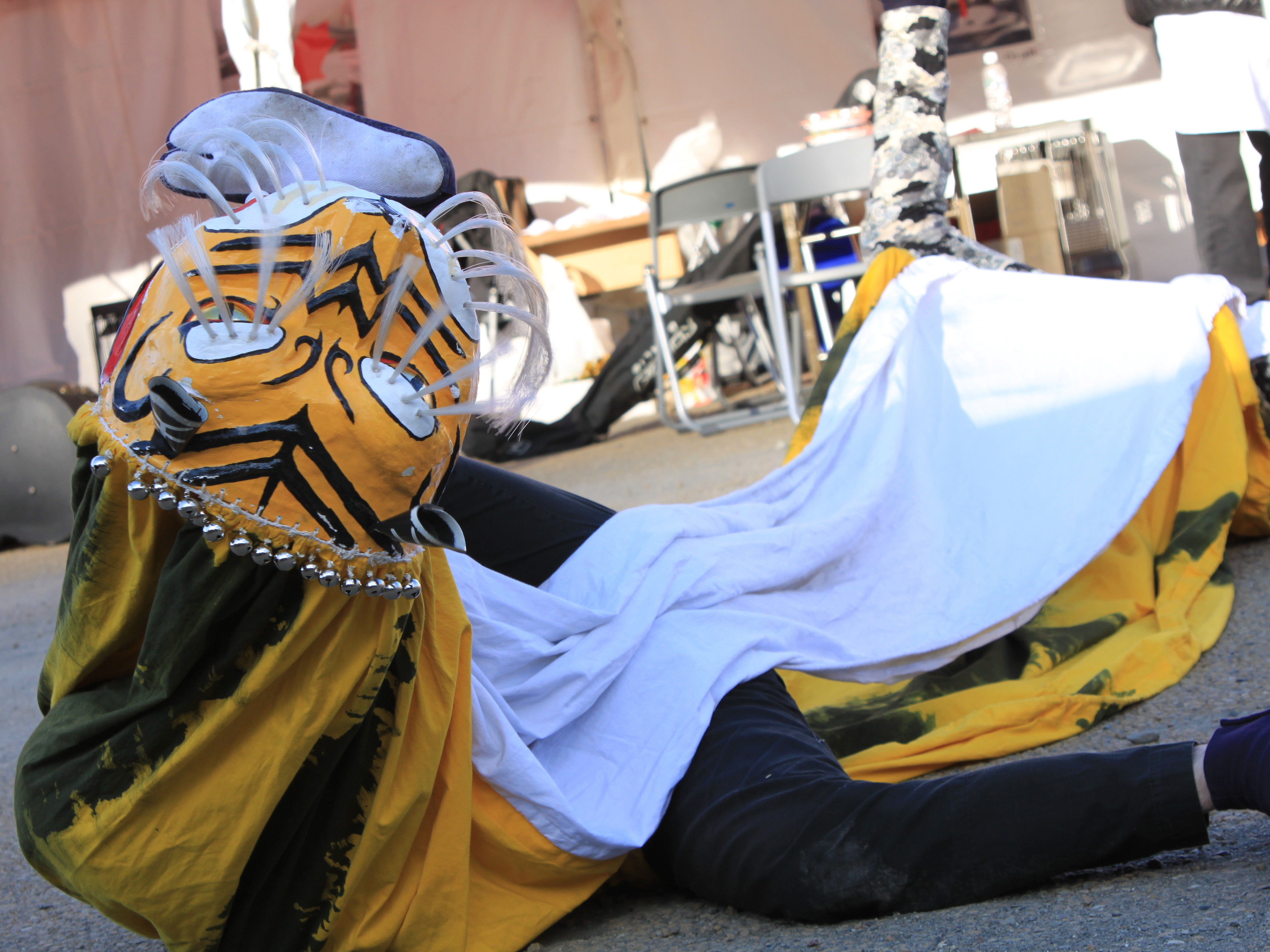 おおつち鮭まつり会場で虎舞を舞っている様子
