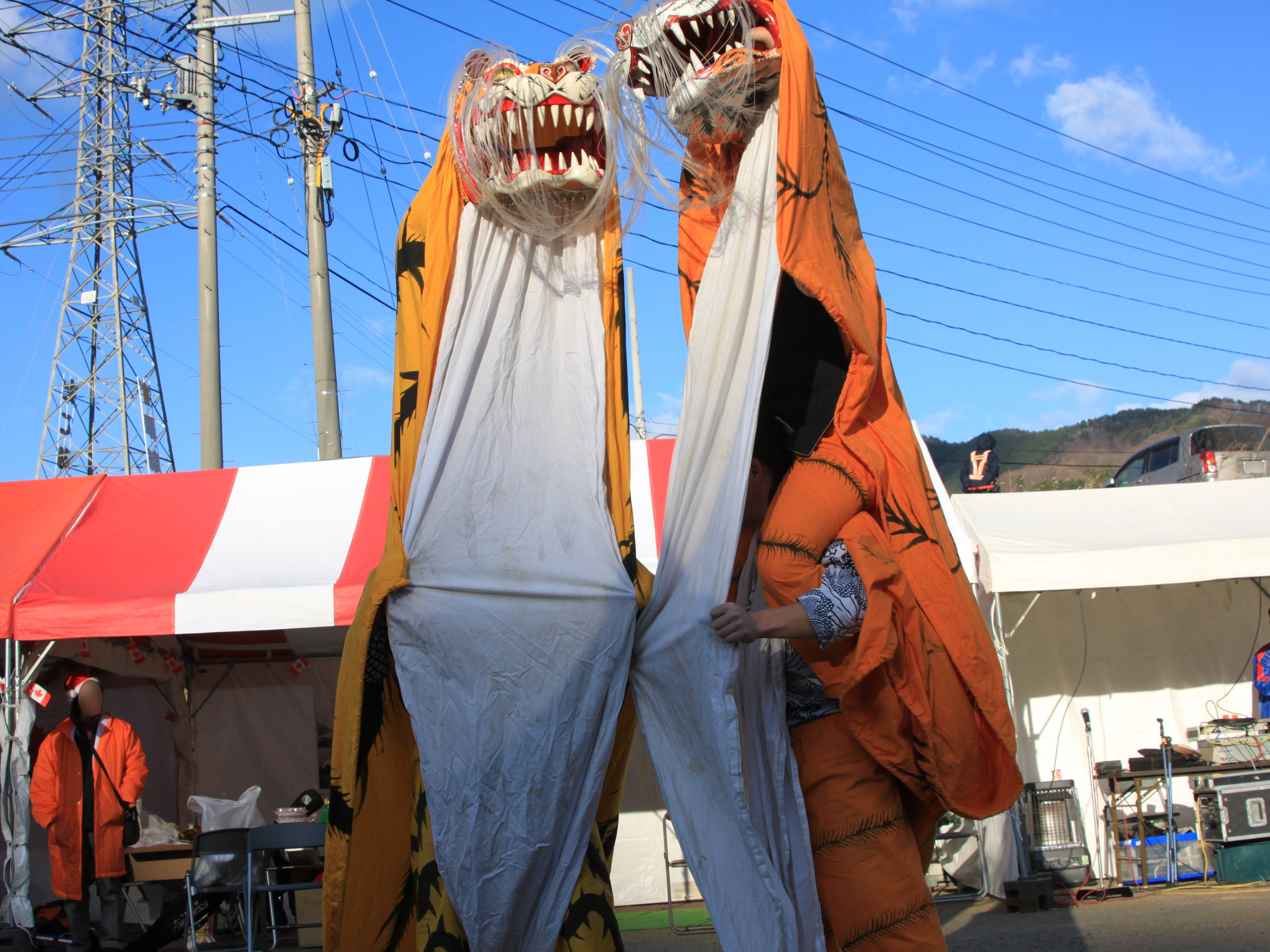 おおつち鮭まつり会場で虎舞を舞っている様子