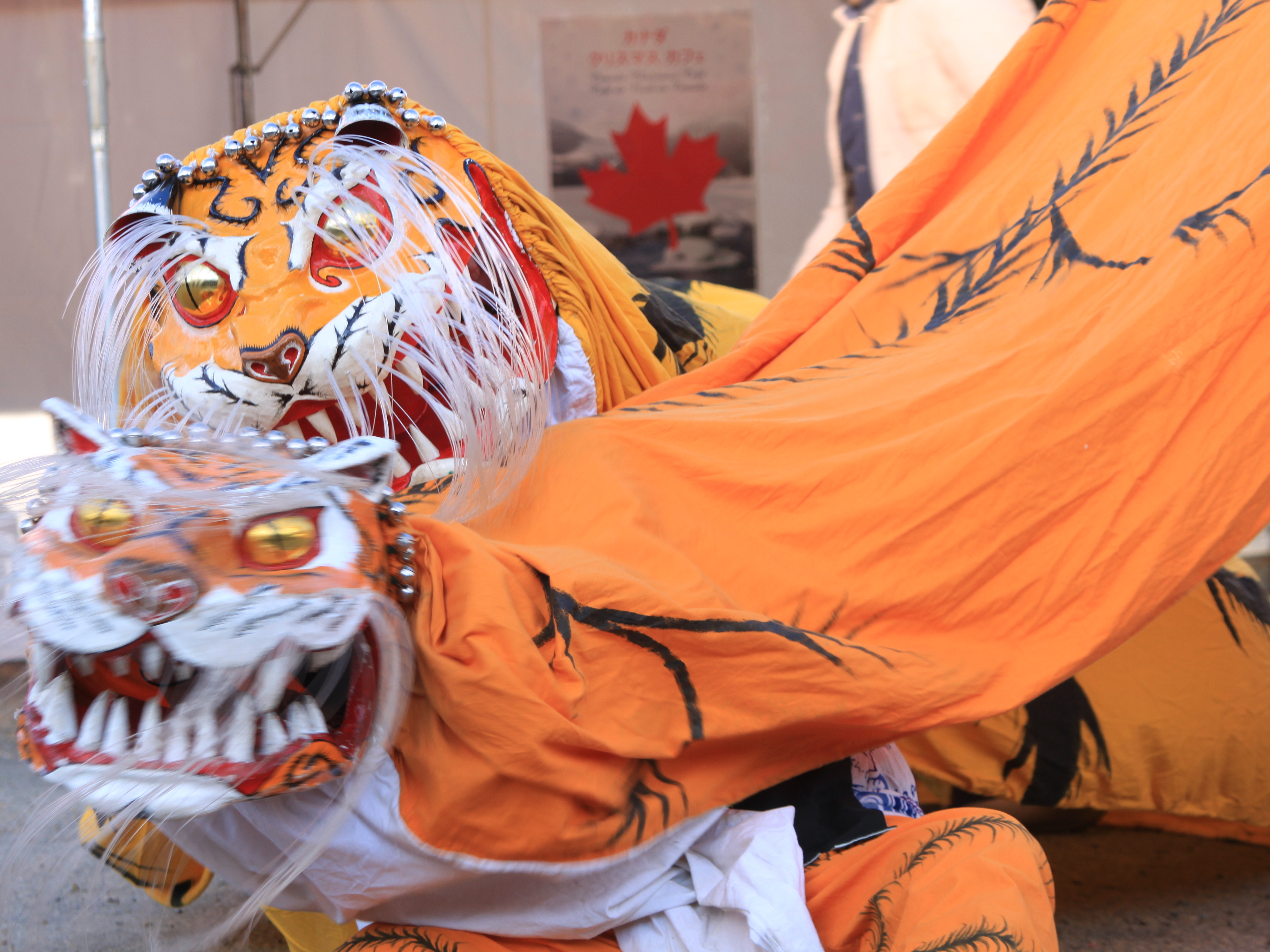 おおつち鮭まつり会場で虎舞を舞っている様子