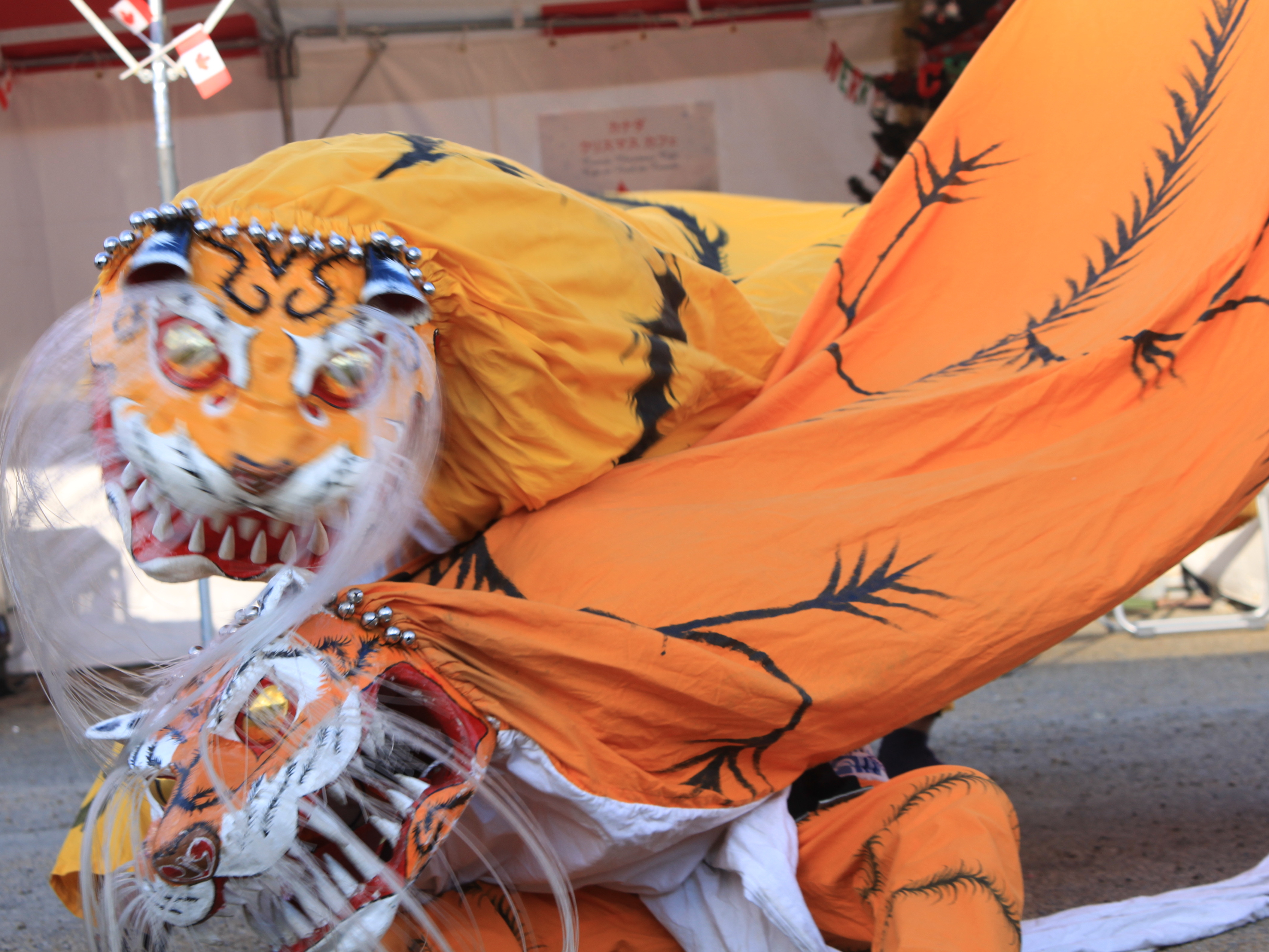 おおつち鮭まつり会場で虎舞を舞っている様子