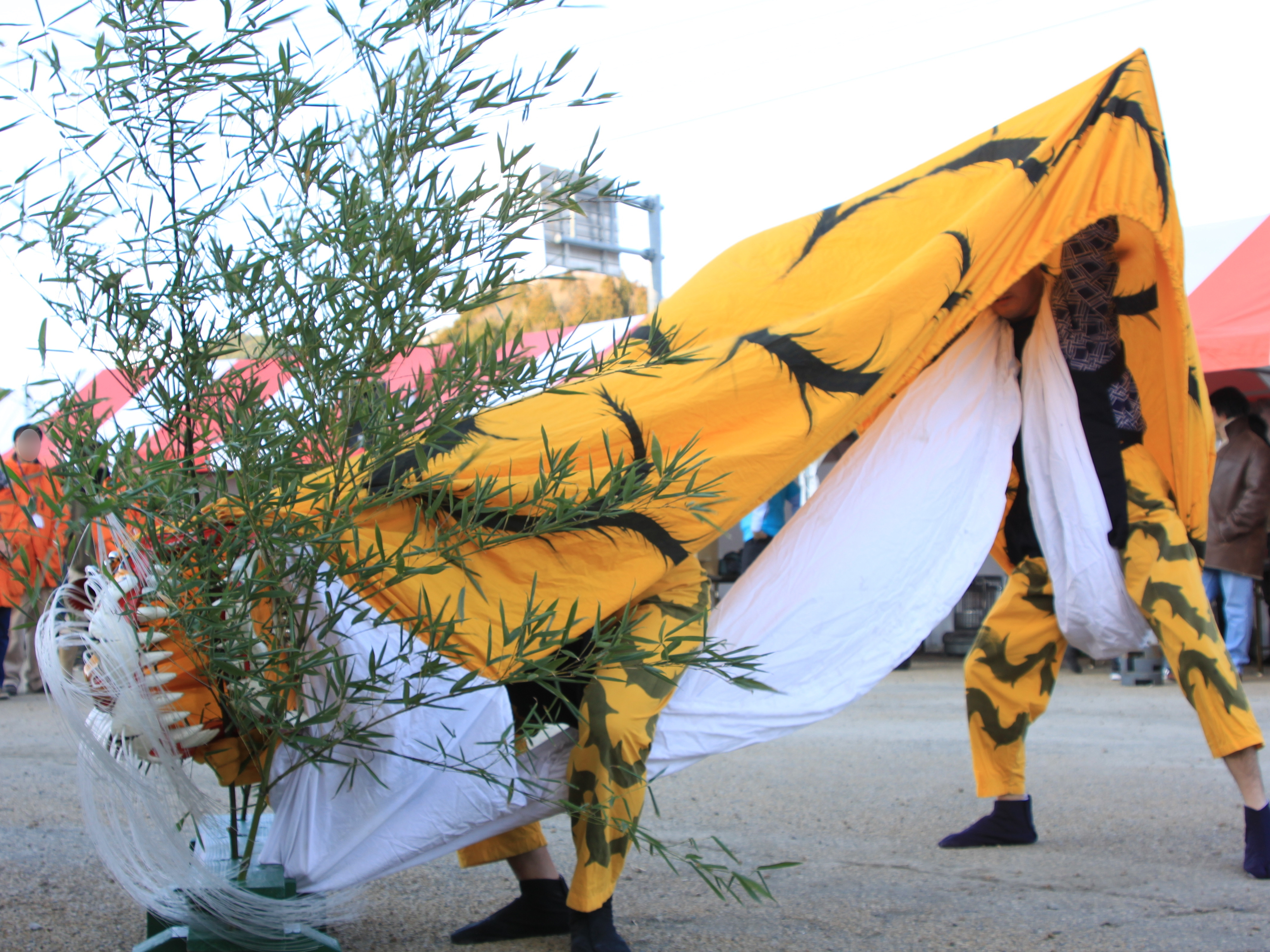 おおつち鮭まつり会場で虎舞を舞っている様子