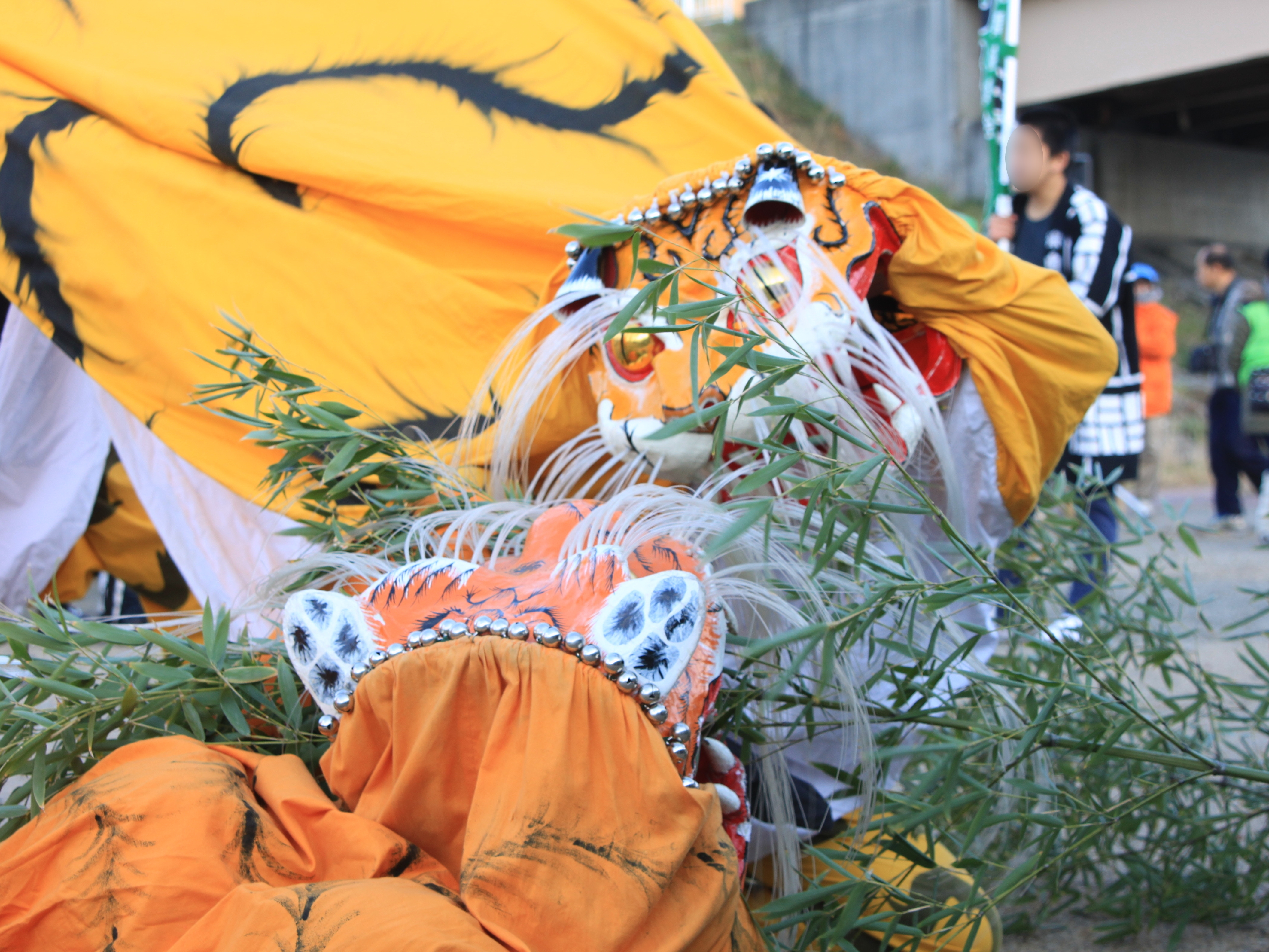 おおつち鮭まつり会場で虎舞を舞っている様子