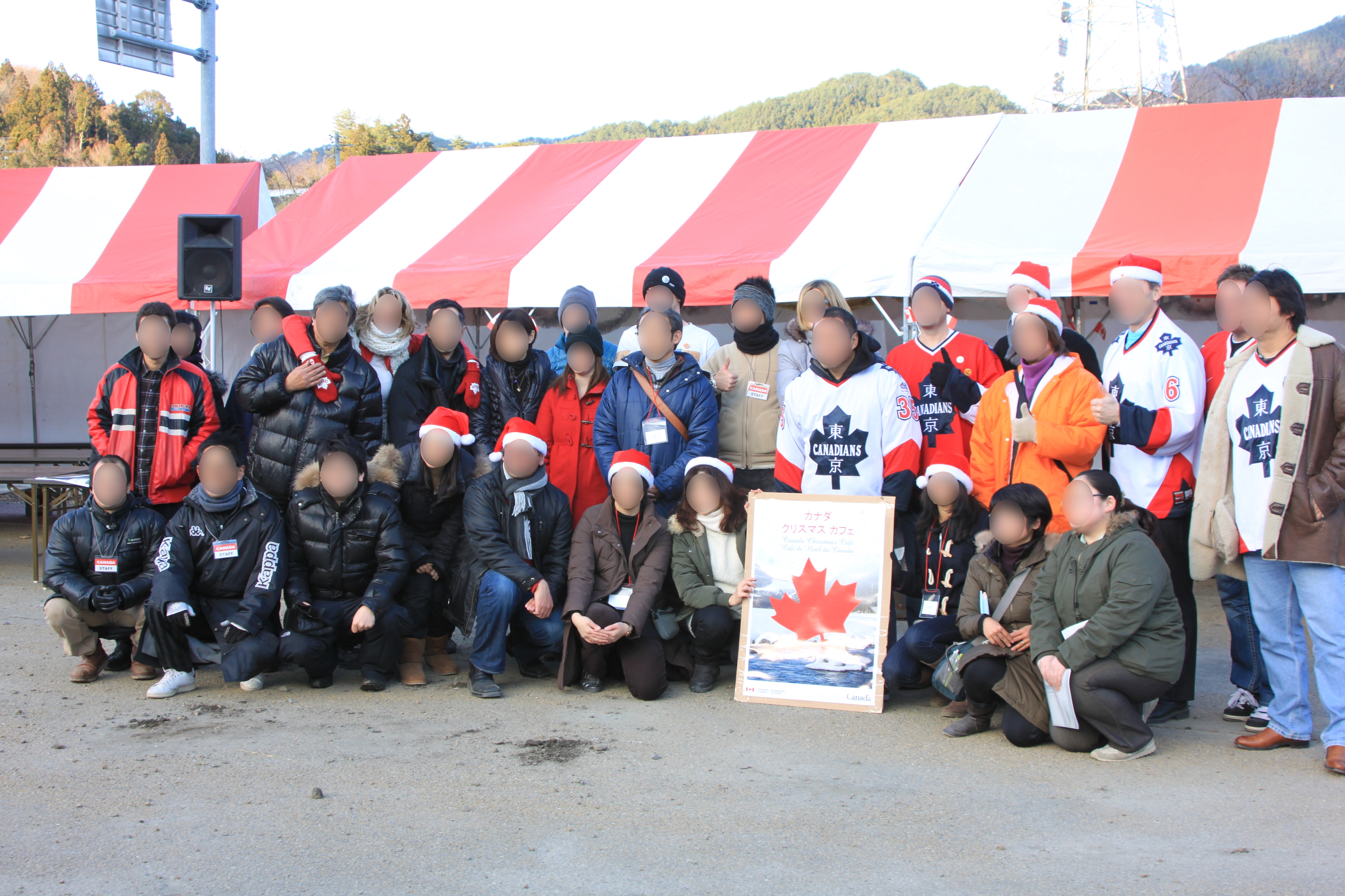 おおつち鮭まつりに参加したカナダ人と関係者の記念撮影の様子