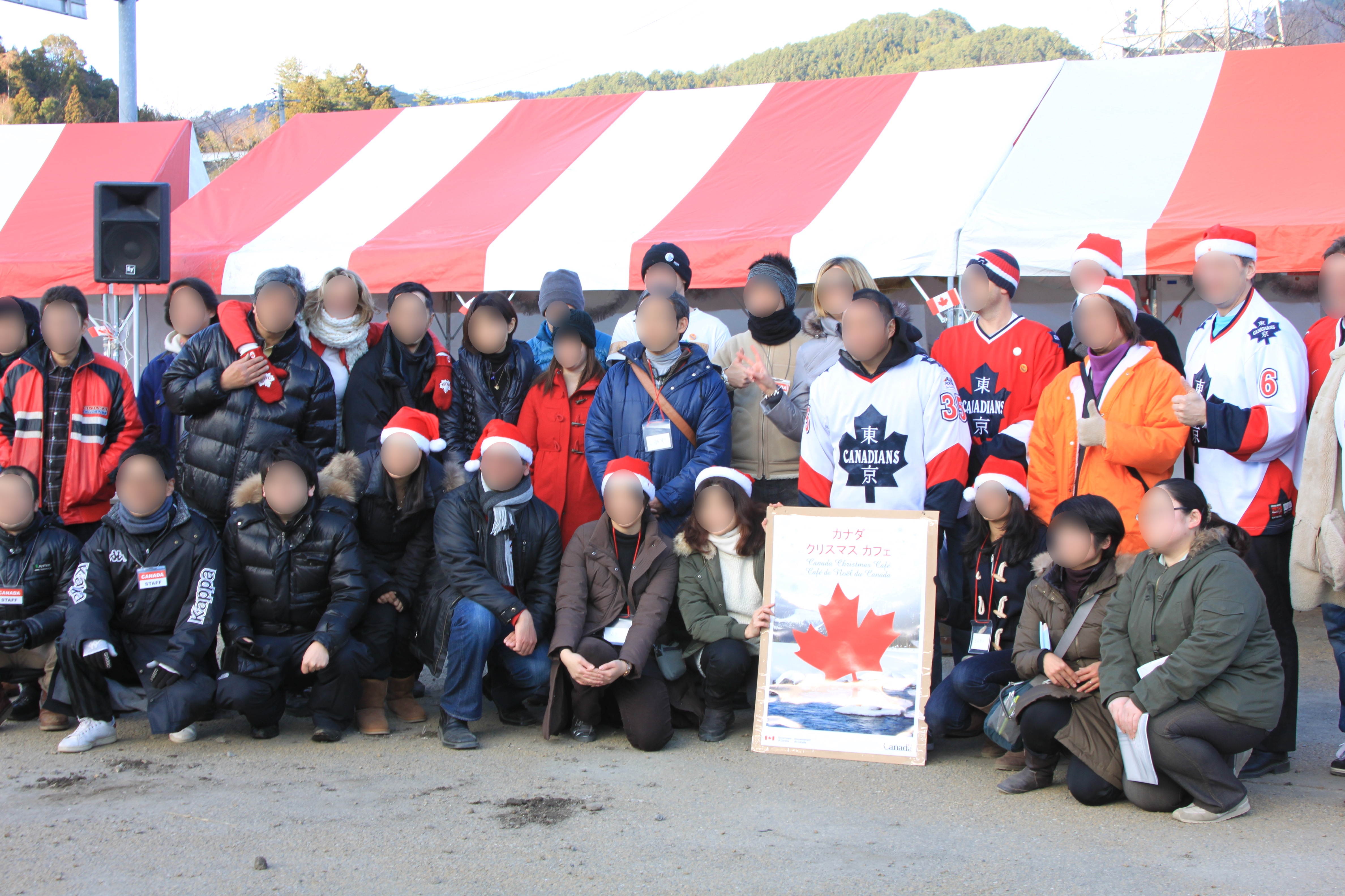 おおつち鮭まつりに参加したカナダ人と関係者の記念撮影の様子