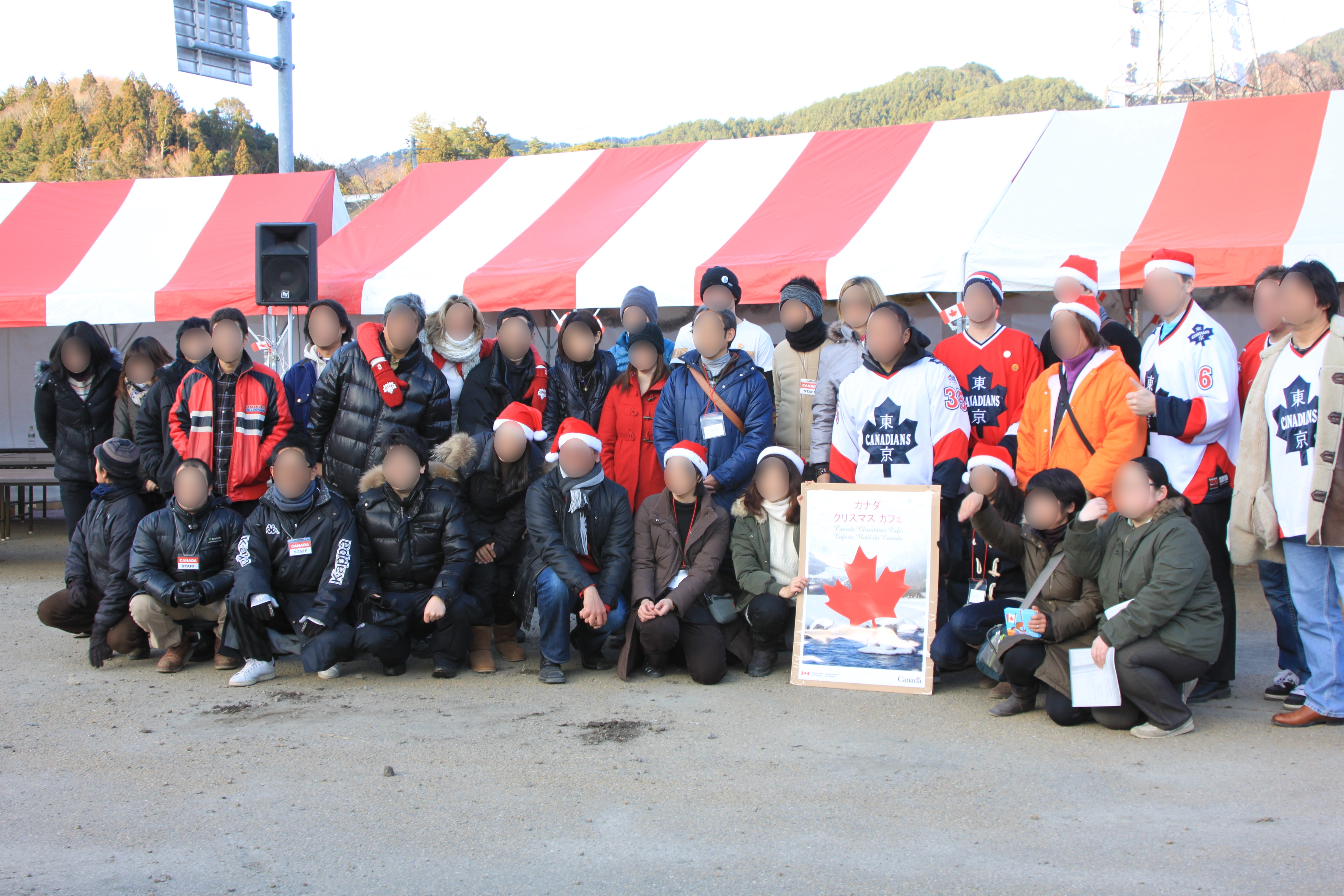 おおつち鮭まつりに参加したカナダ人と関係者の記念撮影の様子