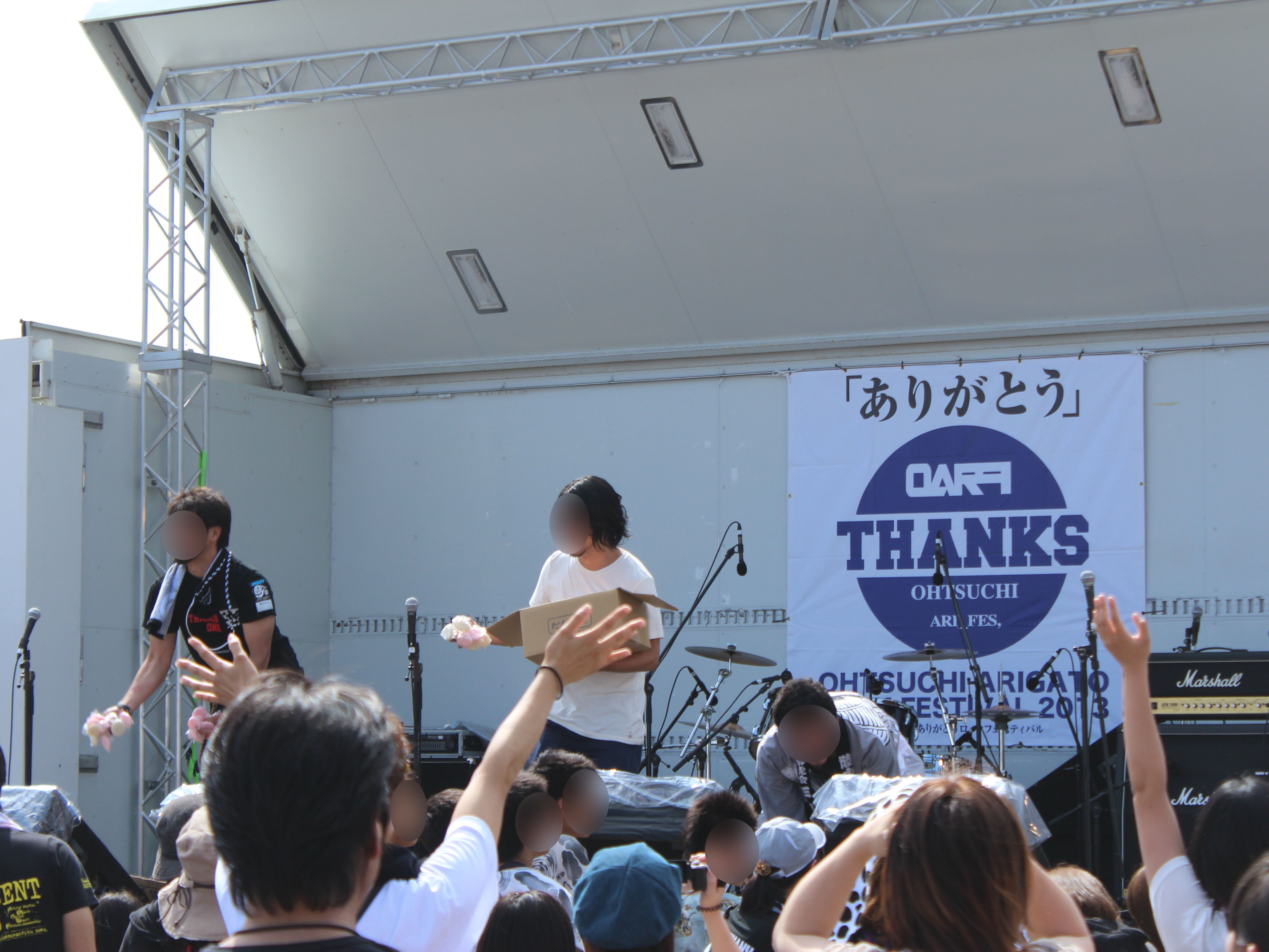 おおつちありがとうロックフェスティバル 拡大表示 ダウンロード 識別子 : 9937 タイトルよみ : オオツチアリガトウロックフェスティバル 說明・要約 : 大槌漁港周辺特設会場で開催された「おおつちありがとうロックフェスティバル」の様子 作成者(撮影者) : 大槌町 作成者(撮影者)よみ : オオツチチョウ 提供者 : 提供者よみ : 撮影(作成)場所 : 岩手県上閉伊郡大槌町 赤浜 撮影(作成)場所よみ : イワテケンカミヘイグンオオツチチョウ アカハマ 作成日・撮影日 : 2013年 7月 28日 カテゴリー : イベント 地域 : 赤浜地区 備考 : 震災事象 住民(ふるさと科 学校 住民の災害対策 イベント) > 仮設住宅 (1年〜2年目 暮らし再生・復興計画づくり)期 > おおつちありがとうロックフェスティバルが開催。