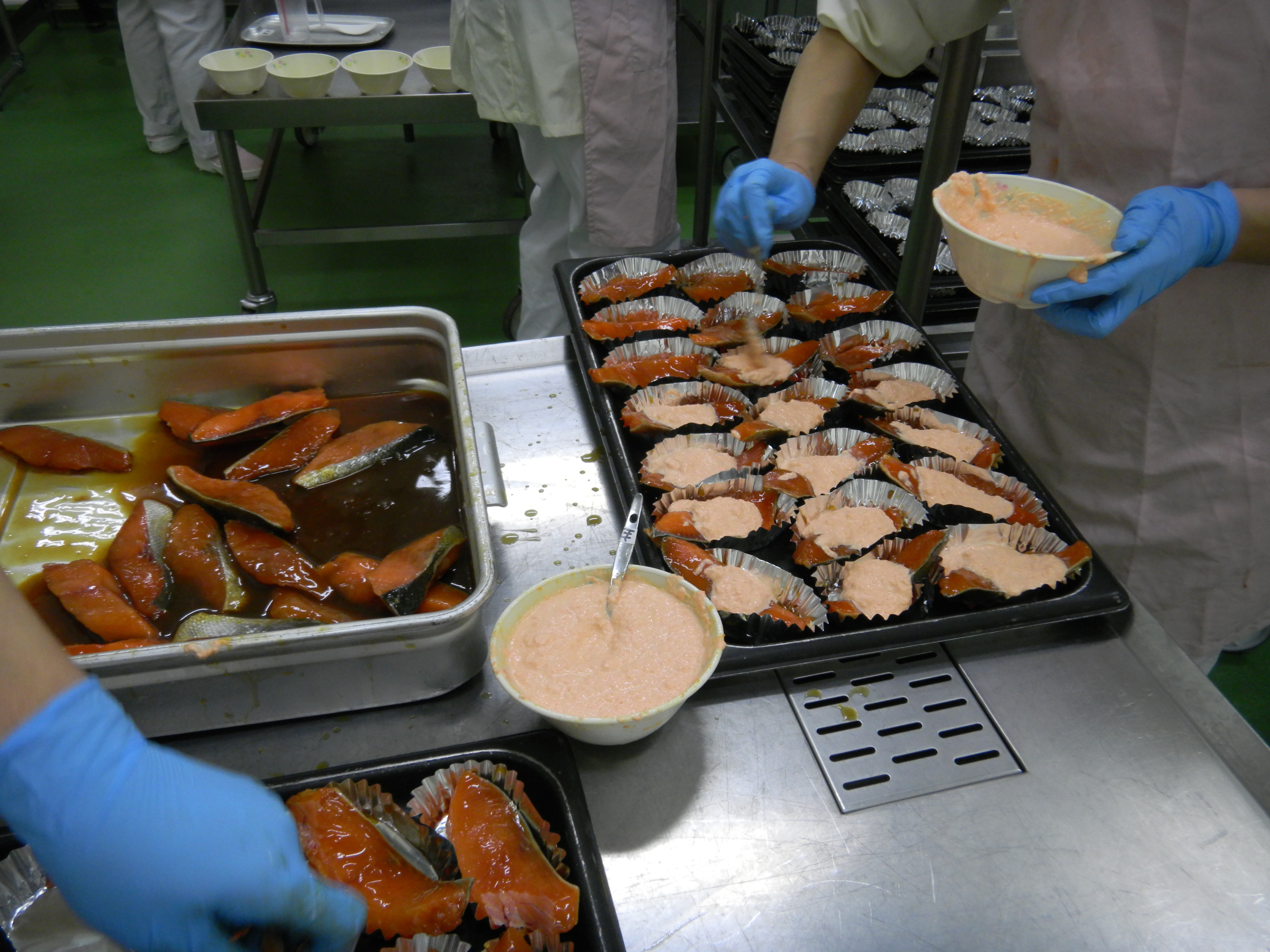 鮭の日給食の日の学校給食センター 拡大表示 ダウンロード 識別子 : 10238 タイトルよみ : サケノヒキュウショクノヒノガッコウキュウショクセンター 說明・要約 : 学校給食センターで鮭の切り身を調理している様子 作成者(撮影者) : 非公開 作成者(撮影者)よみ : ヒコウカイ 提供者 : 非公開 提供者よみ : ヒコウカイ 撮影(作成)場所 : 岩手県上閉伊郡大槌町 大槌町 撮影(作成)場所よみ : イワテケンカミヘイグンオオツチチョウ オオツチチョウ 作成日・撮影日 : 2012年 11月 8日 カテゴリー : 日々の暮らし 文化 学校・教育 地域 : その他 備考 :