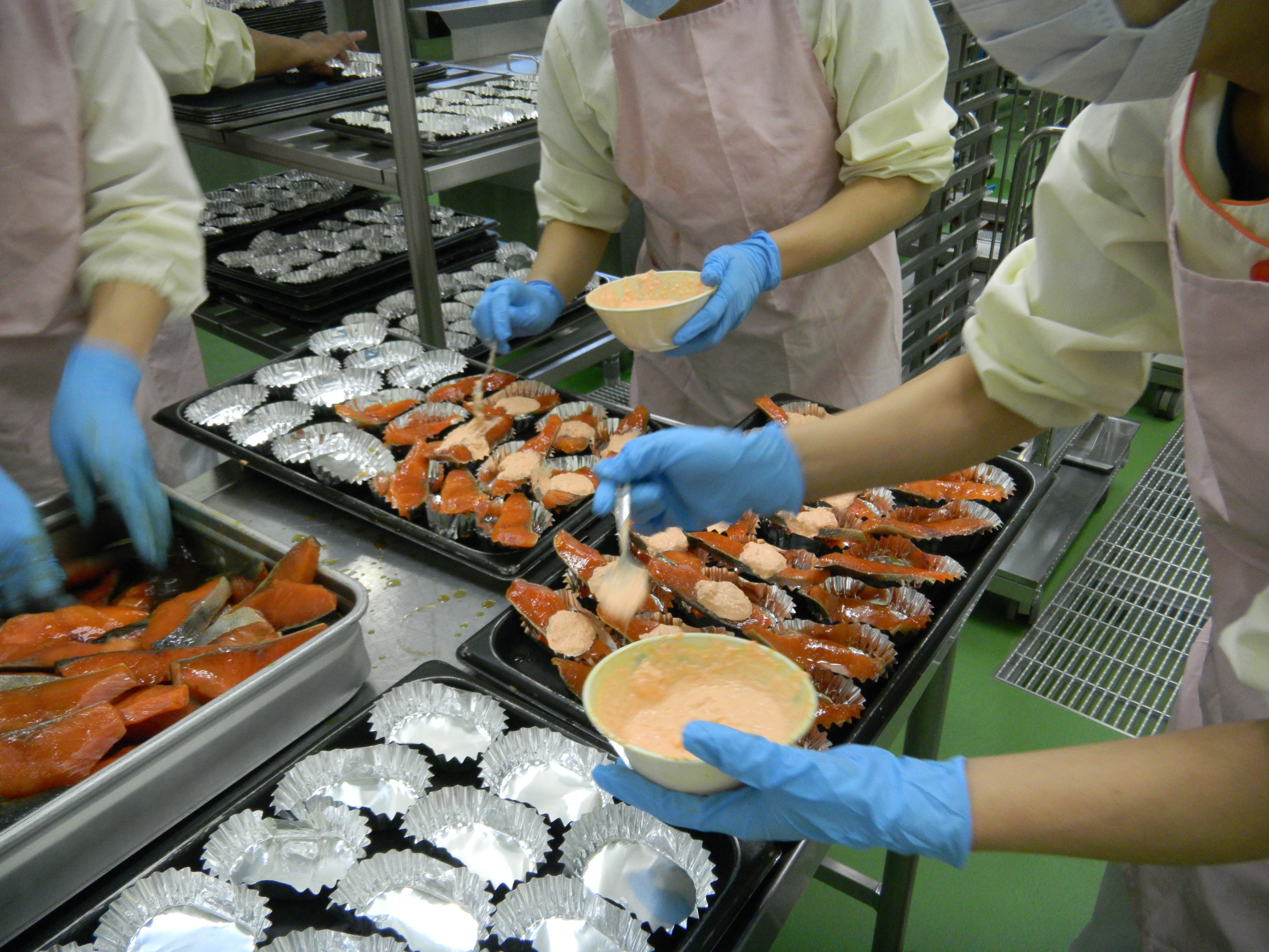 鮭の日給食の日の学校給食センター 拡大表示 ダウンロード 識別子 : 10242 タイトルよみ : サケノヒキュウショクノヒノガッコウキュウショクセンター 說明・要約 : 学校給食センターで鮭の切り身を調理している様子 作成者(撮影者) : 非公開 作成者(撮影者)よみ : ヒコウカイ 提供者 : 非公開 提供者よみ : ヒコウカイ 撮影(作成)場所 : 岩手県上閉伊郡大槌町 大槌町 撮影(作成)場所よみ : イワテケンカミヘイグンオオツチチョウ オオツチチョウ 作成日・撮影日 : 2012年 11月 8日 カテゴリー : 日々の暮らし 文化 学校・教育 地域 : その他 備考 :