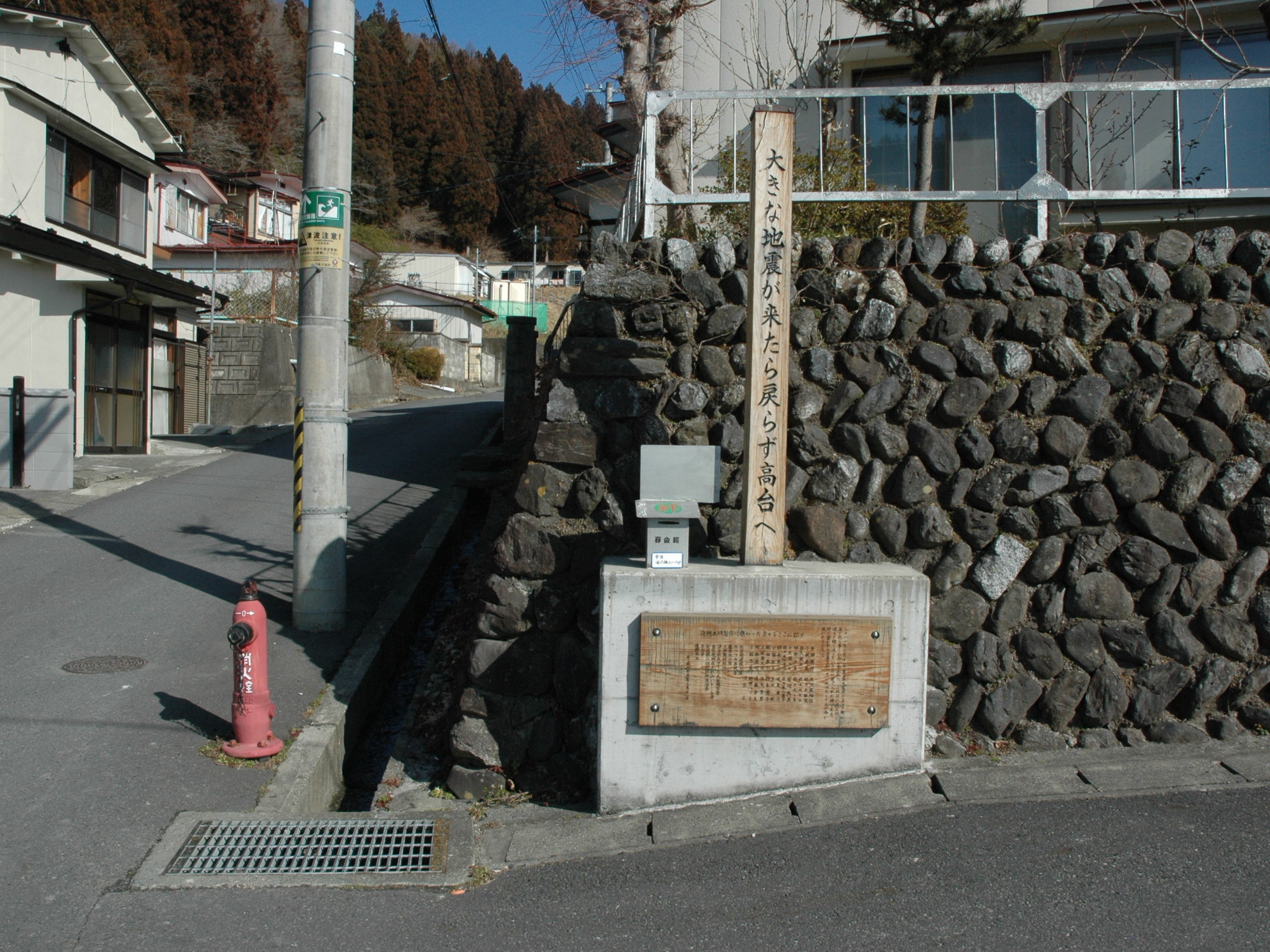 震災を忘れないための木碑 拡大表示 ダウンロード 識別子 : 10253 タイトルよみ : シンサイヲワスレナイタメノモクヒ 說明・要約 : 震災を忘れないための木碑 作成者(撮影者) : 大槌町 作成者(撮影者)よみ : オオツチチョウ 提供者 : 提供者よみ : 撮影(作成)場所 : 岩手県上閉伊郡大槌町 安渡 撮影(作成)場所よみ : イワテケンカミヘイグンオオツチチョウ アンド 作成日・撮影日 : 2015年 2月 25日 カテゴリー : その他 地域 : 安渡地区 備考 :